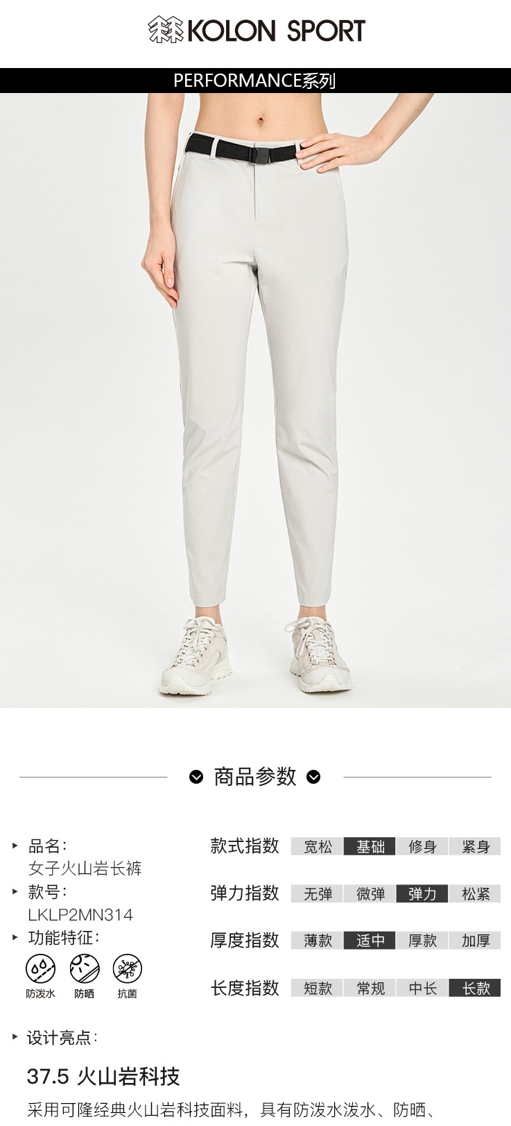 KOLONSPORT可隆长裤女款防泼水运动裤春季防晒裤子户外休闲裤LKLP2MN314