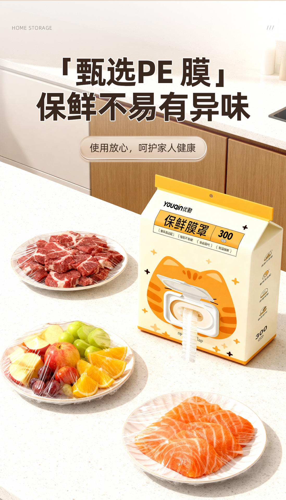 【900个装 一次性保鲜膜罩】优勤一次性保鲜膜罩 食品级专用保险膜套家用带松紧冰箱剩菜碗盘罩