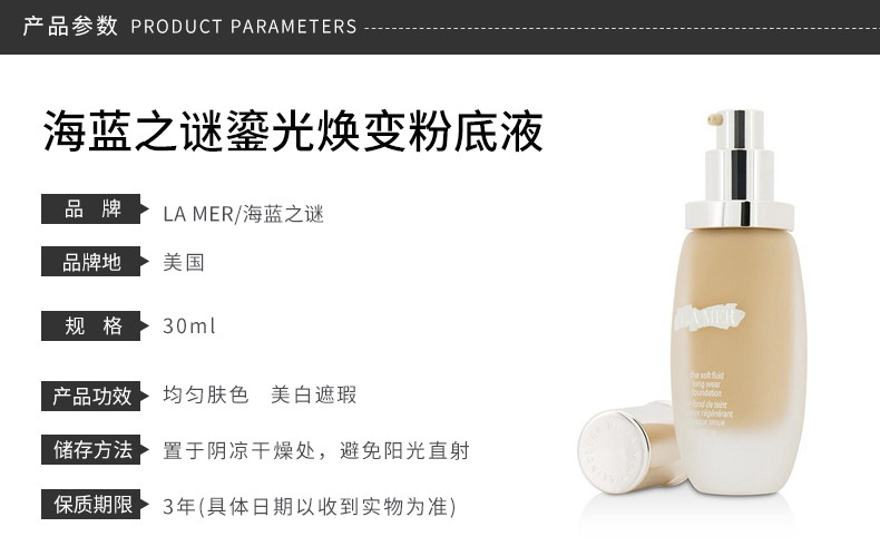LA MER 海蓝之谜 鎏光焕变粉底液30ml #01 粉瓷白色 美国
