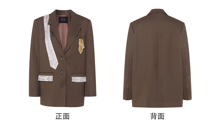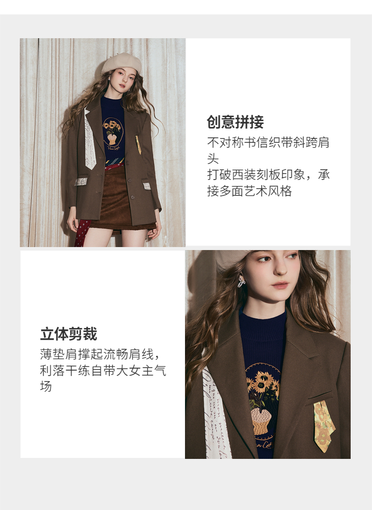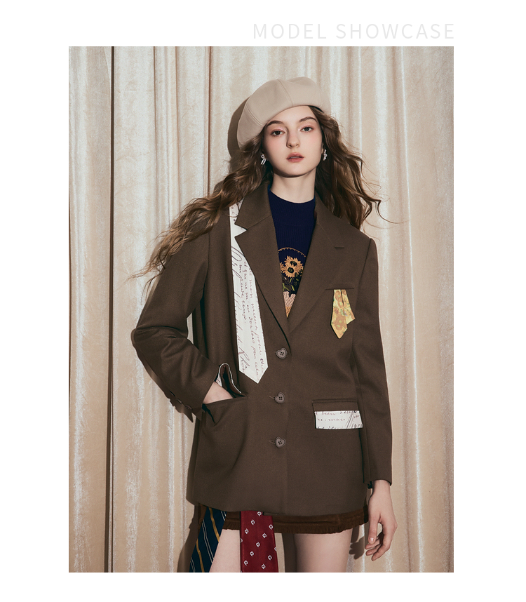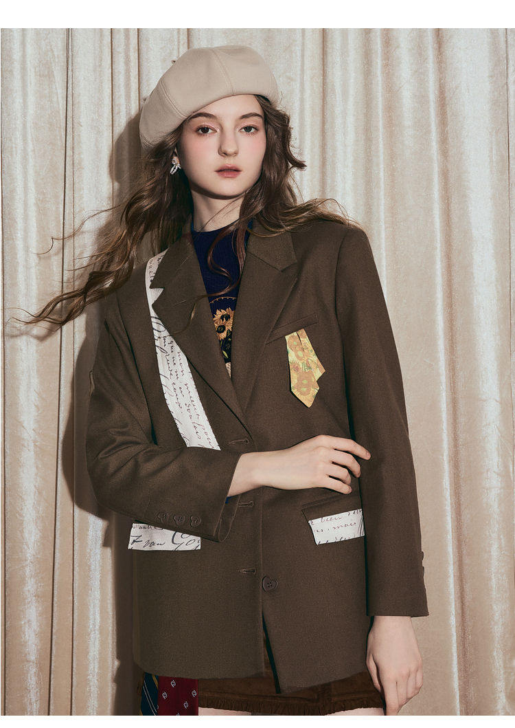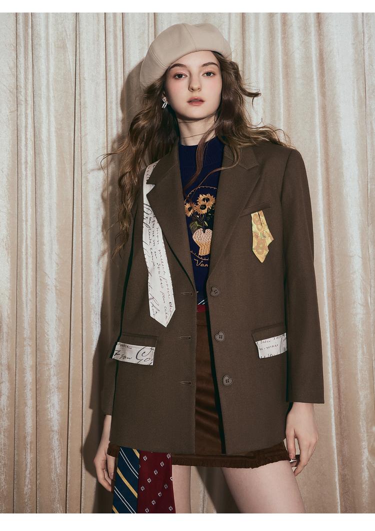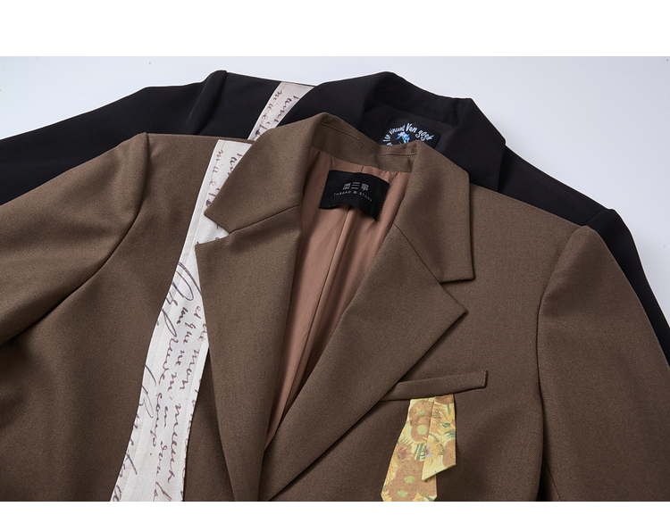 两三事梵高文艺薄暮法则2025秋季新款时尚印花领带装饰西装外套女