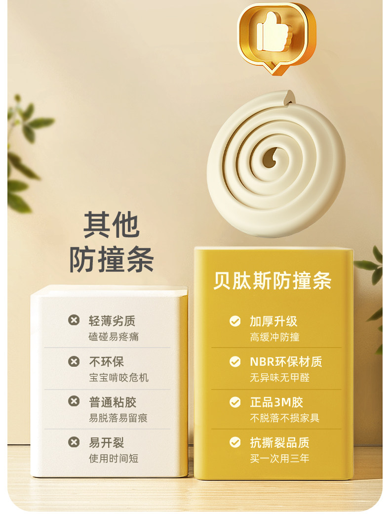 贝肽斯儿童防撞条桌角防撞贴宝宝防磕碰防撞3M胶墙角婴儿软包护角