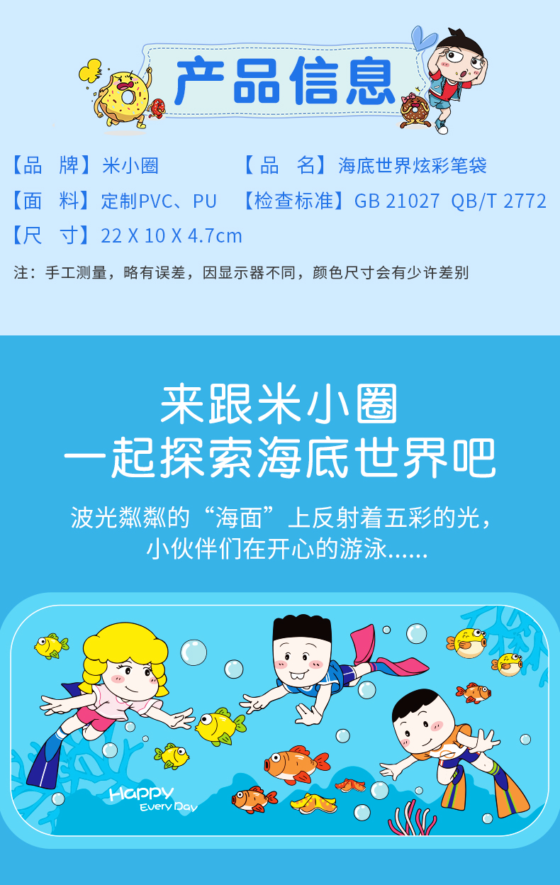 米小圈笔袋 彩虹女孩笔袋/海底世界炫彩笔袋/奇思妙想笔袋/梦想生活笔袋/炫彩时光机笔袋/炫彩星星船笔袋/音乐小子笔盒