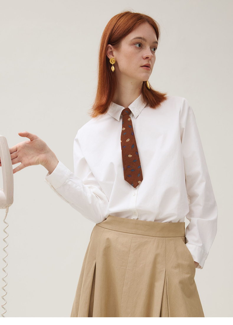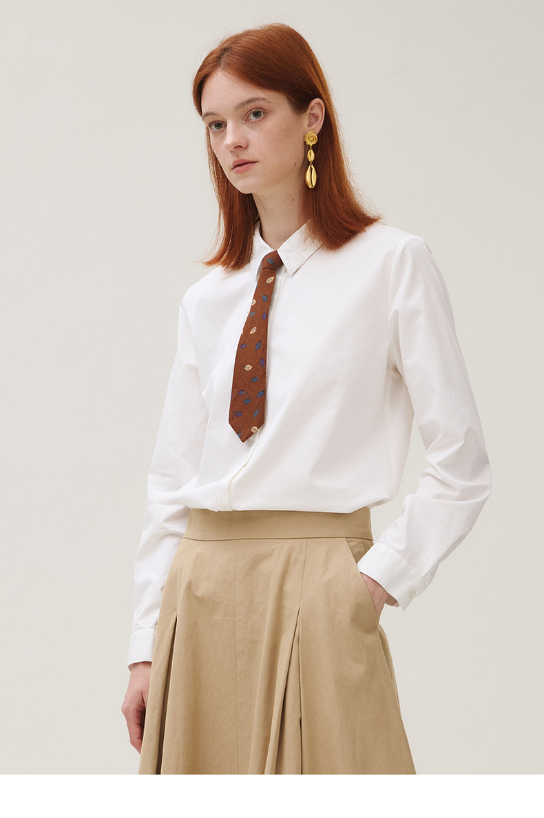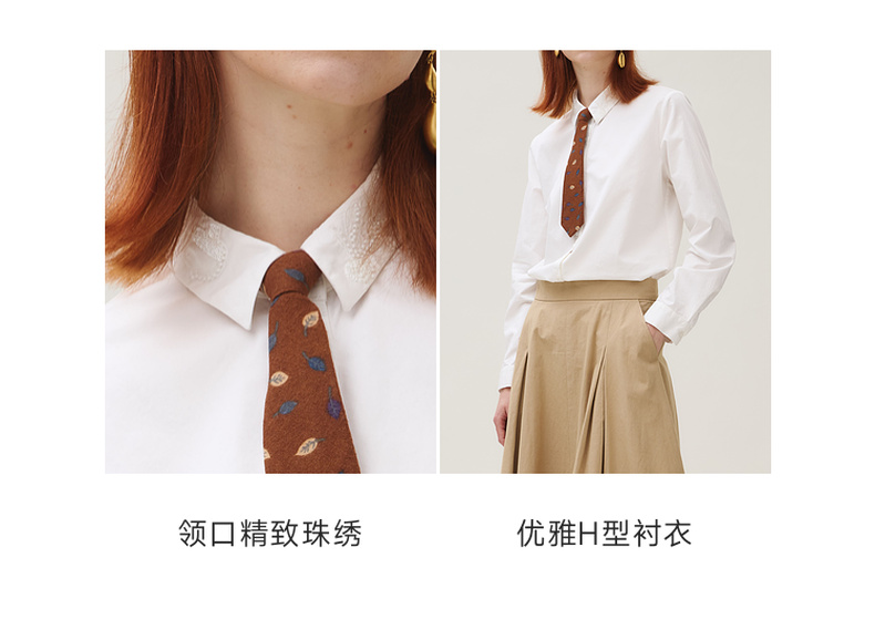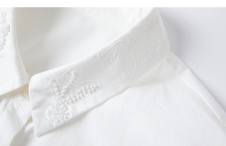 谜底白衬衣长袖女2025秋新品通勤简约刺绣钉珠百搭衬衫253MC1236
