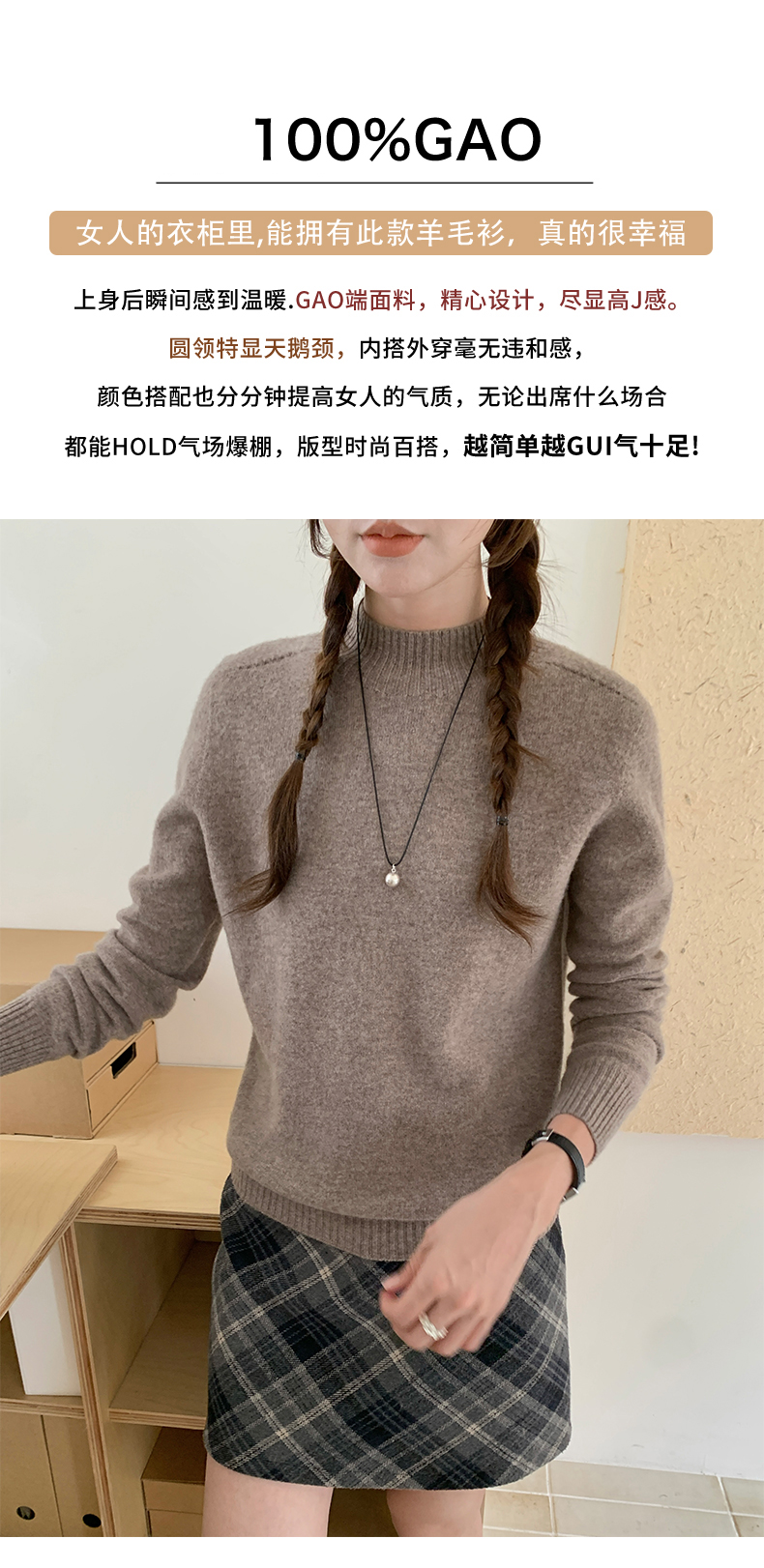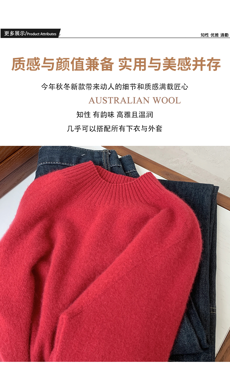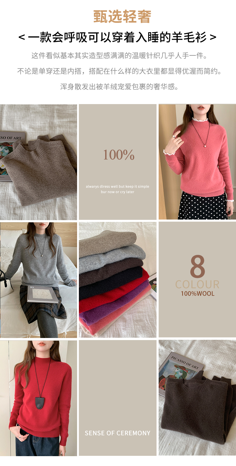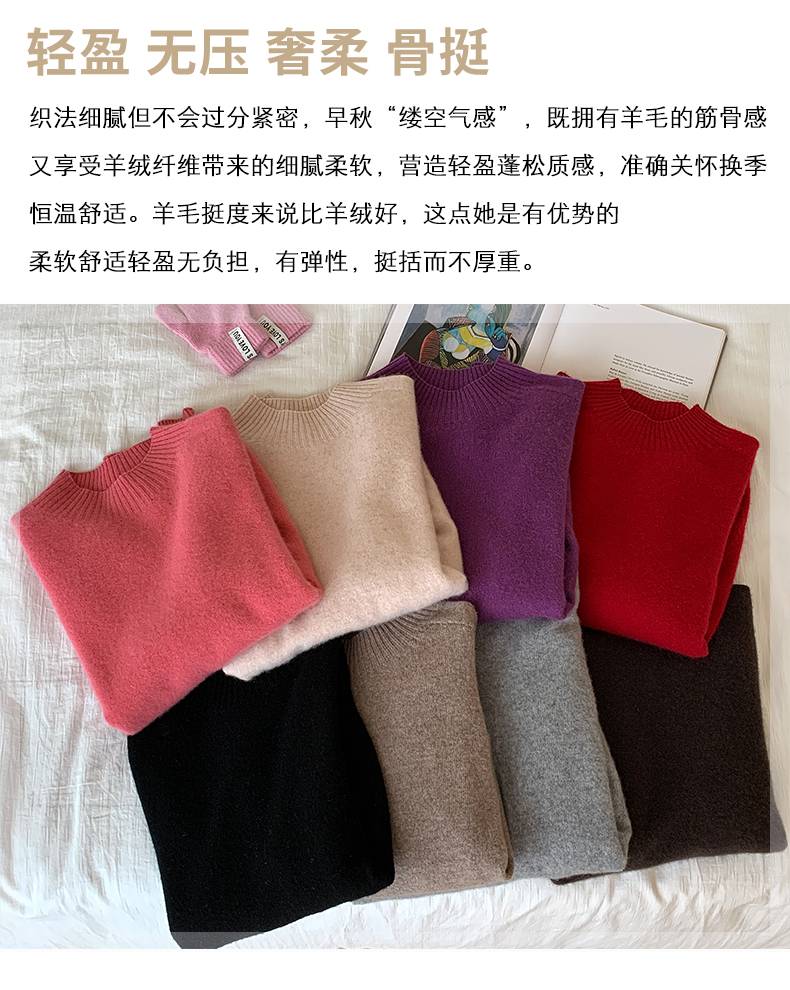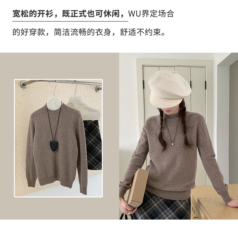 专属-秋冬上新【衣本素 半高纯色一线马鞍肩100%羊毛衫】甄选轻奢羊毛衫 高级圆领设计 高端面料 宽容休闲百搭