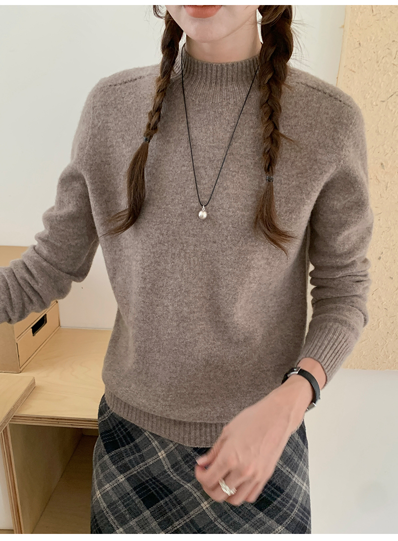 品名:半高纯色一线马鞍肩100%羊毛衫