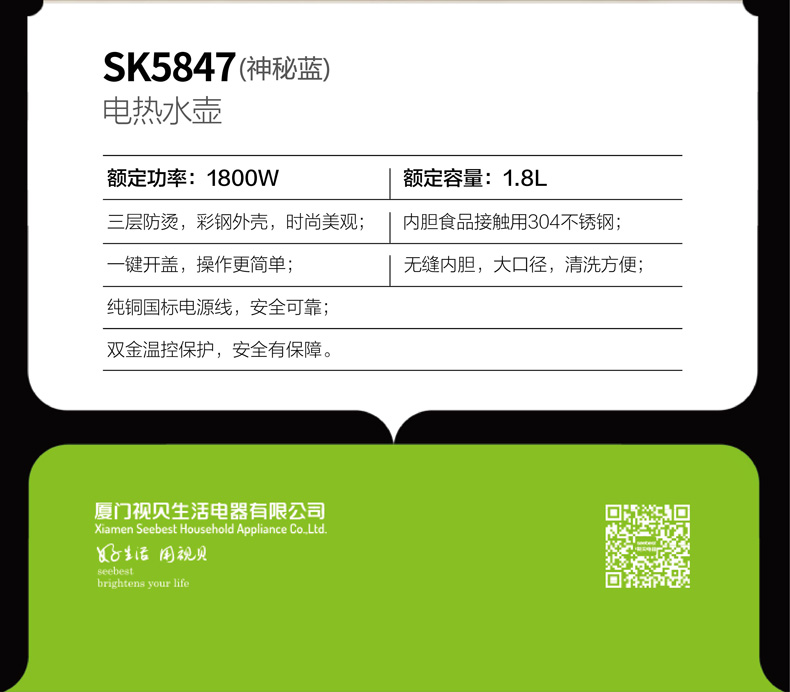 厦门视贝科技有限公司是集产品自主设计,研发,生产,销售于一体的高科技企业。拥有80000平方米的制造厂房,核心员工2000多人。产品线涵盖照明、电工,卫浴,线路,集成风暖等领域。