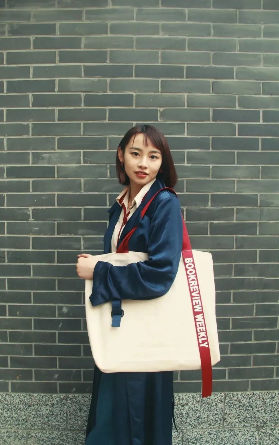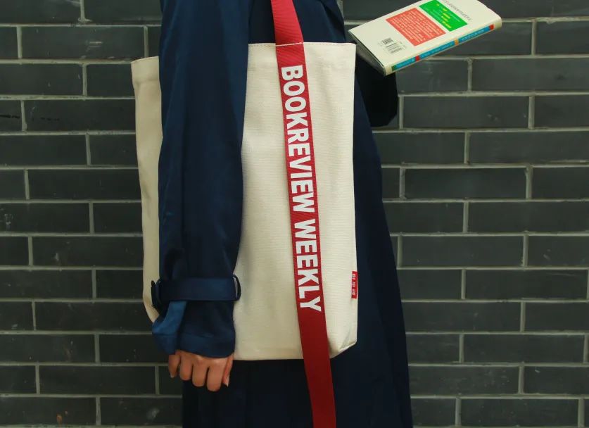 背面为“BOOKREVIEW WEEKLY”(“书评周刊”的英文)字样尼龙密织背带,宽3cm——