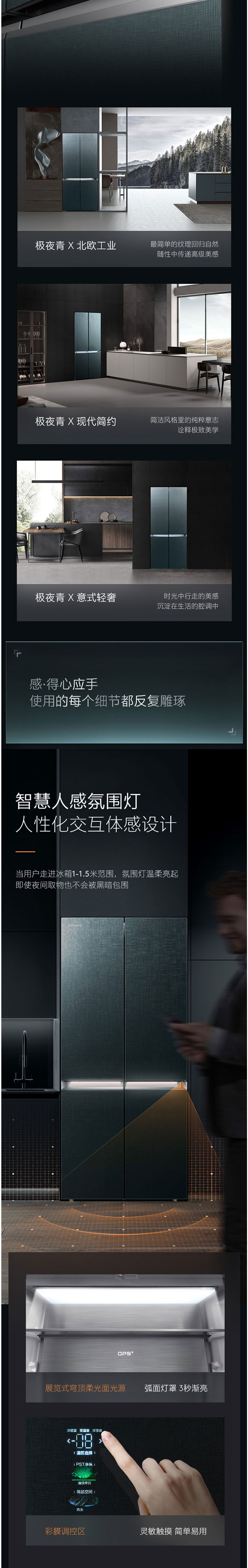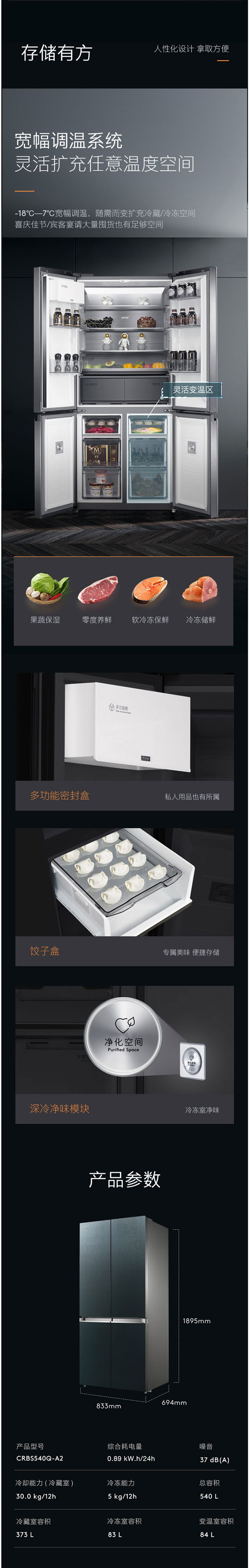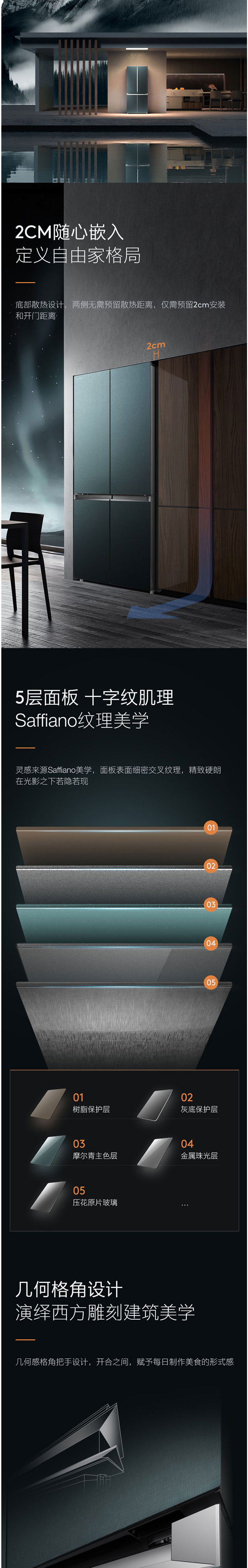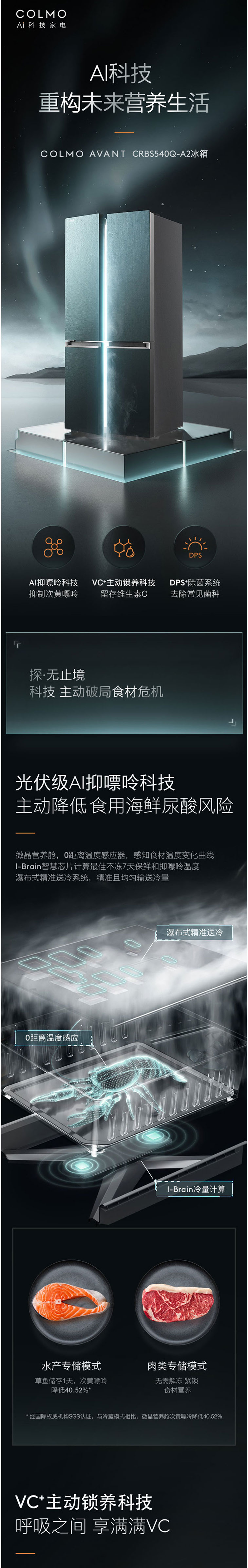 COLMO冰箱CRBS540Q-A2摩尔青十字门 变频风冷 AI智能科技 宽幅调温 超薄嵌入 温湿精控 微晶营养仓