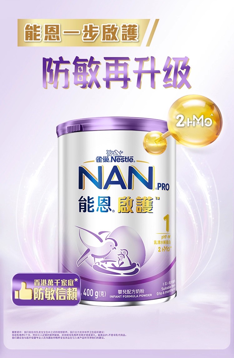 [大罐1段]港版雀巢Nestle 能恩启护2HMO适度水解益生菌婴儿配方奶粉(0-6个月)800g超级能恩