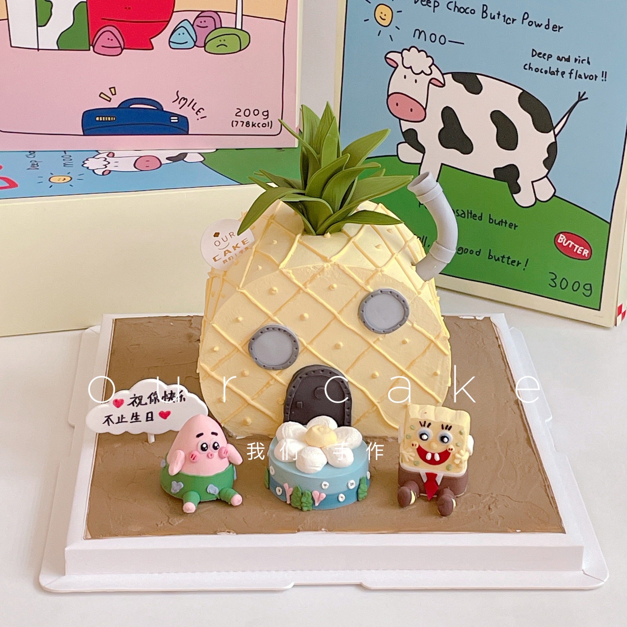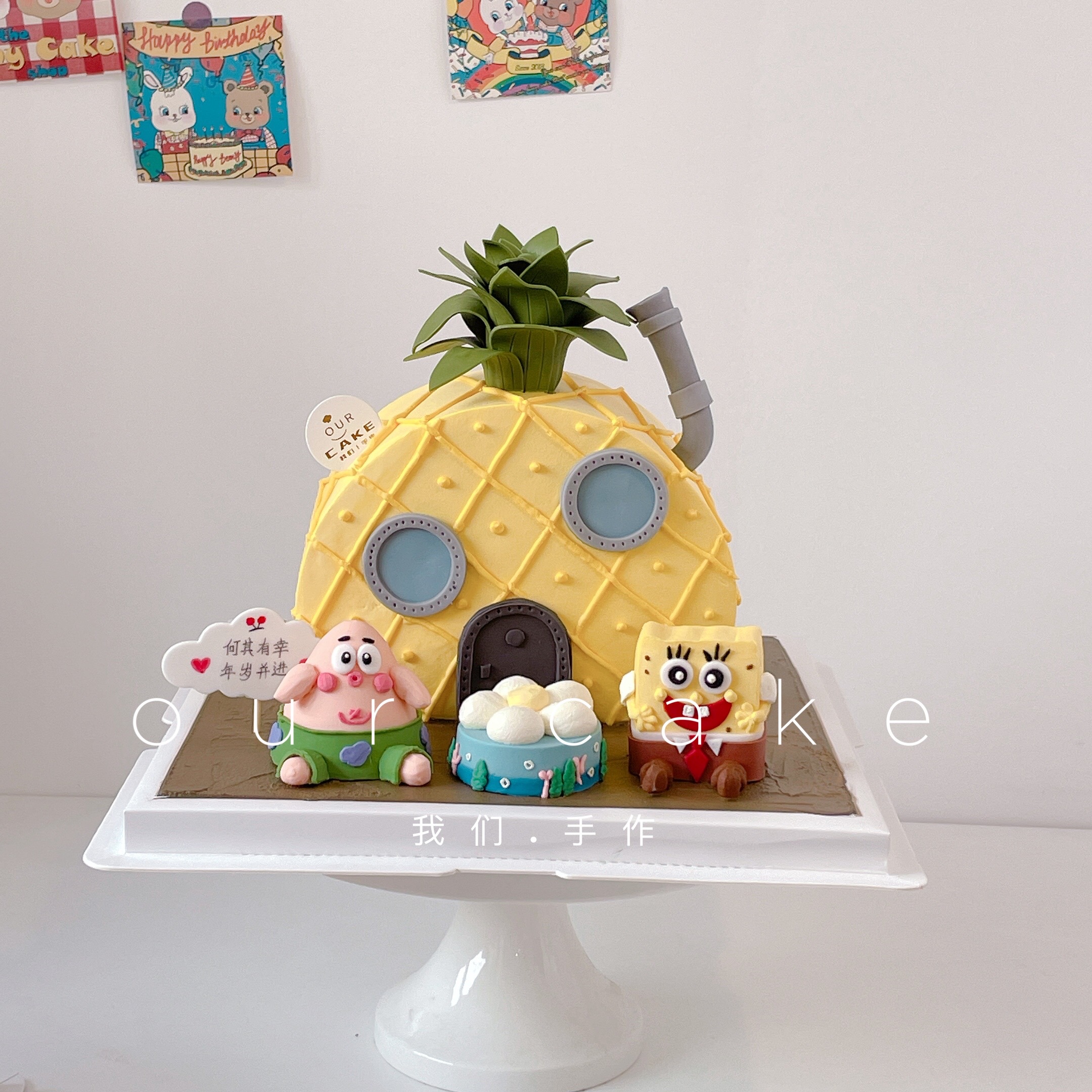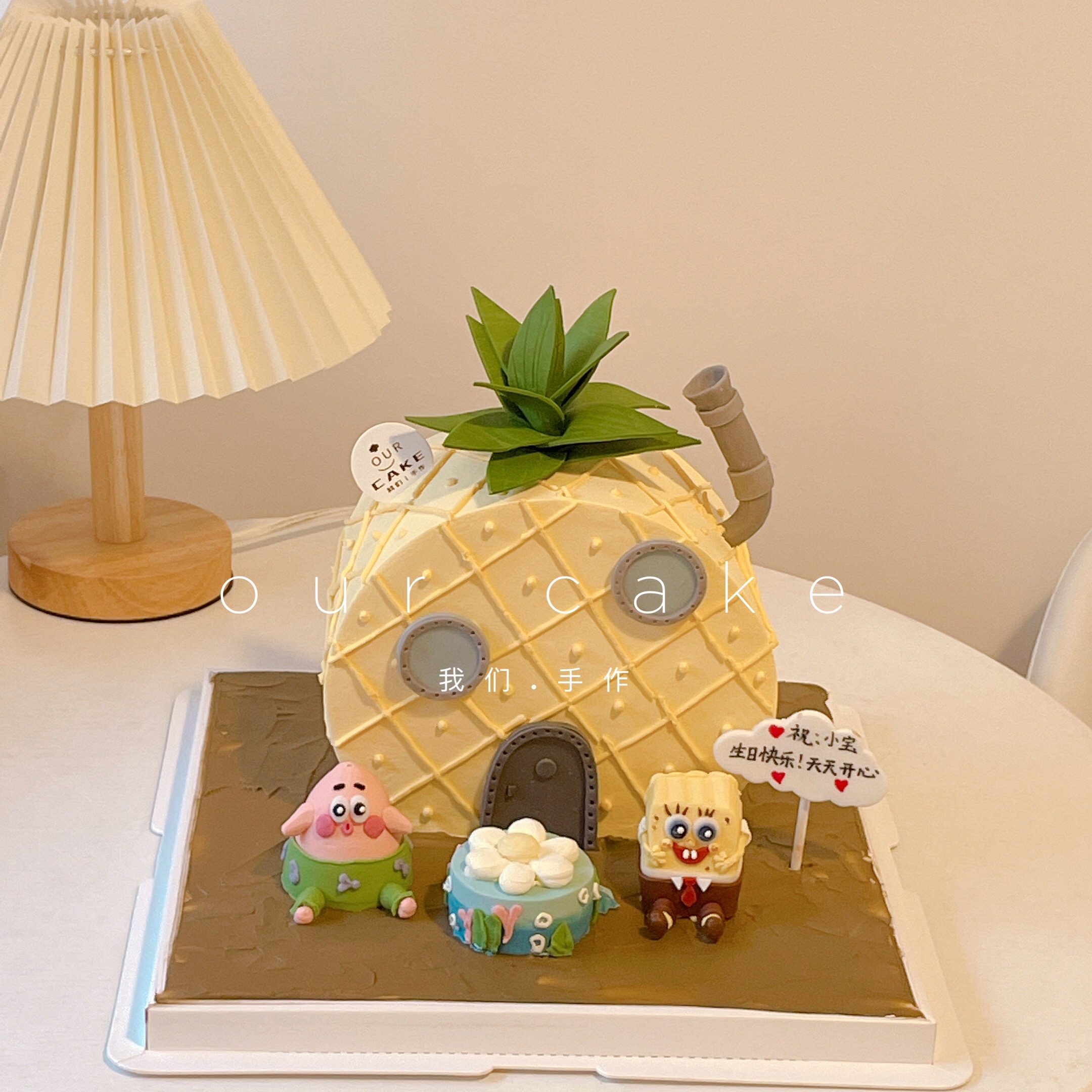 海绵宝宝派大星的菠萝屋蛋糕-低糖处理无添加