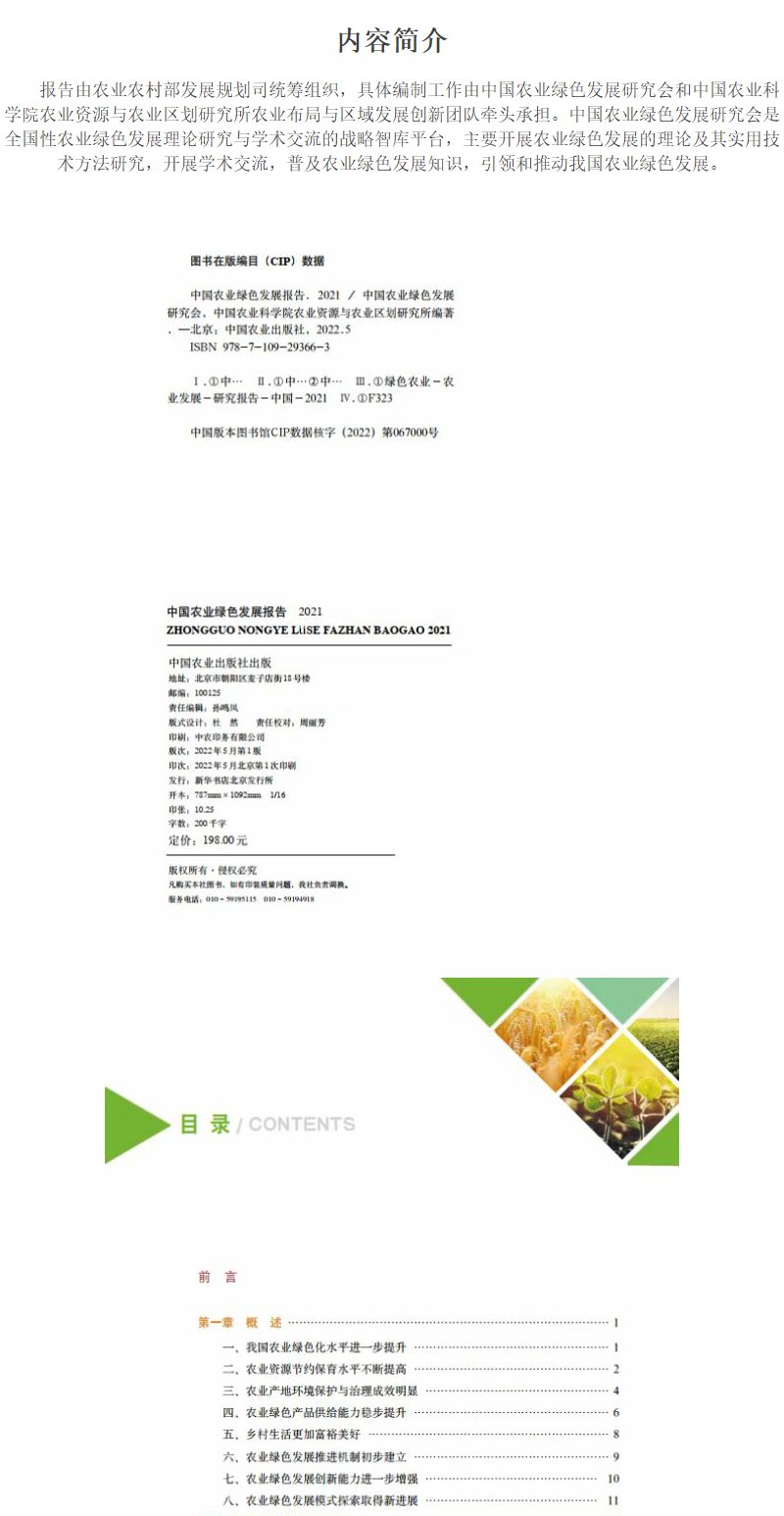 29366 中国农业绿色发展报告2021 中国农业绿色发展研究会,中国农业科学院农业资源与农业区划研究所