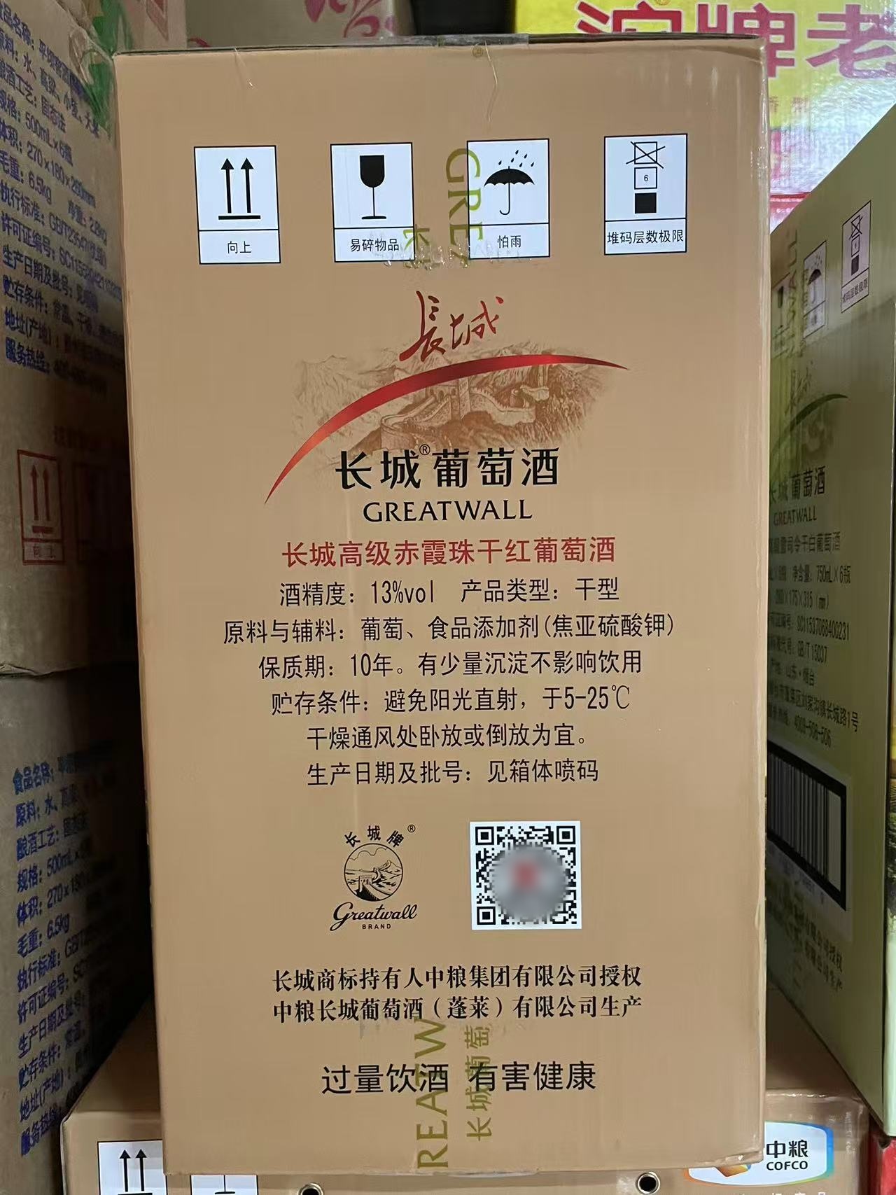2024年长城高级赤霞珠干红光瓶装 酒精度13度 整箱750ml*6瓶包邮