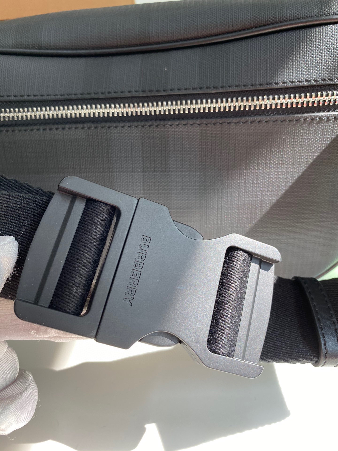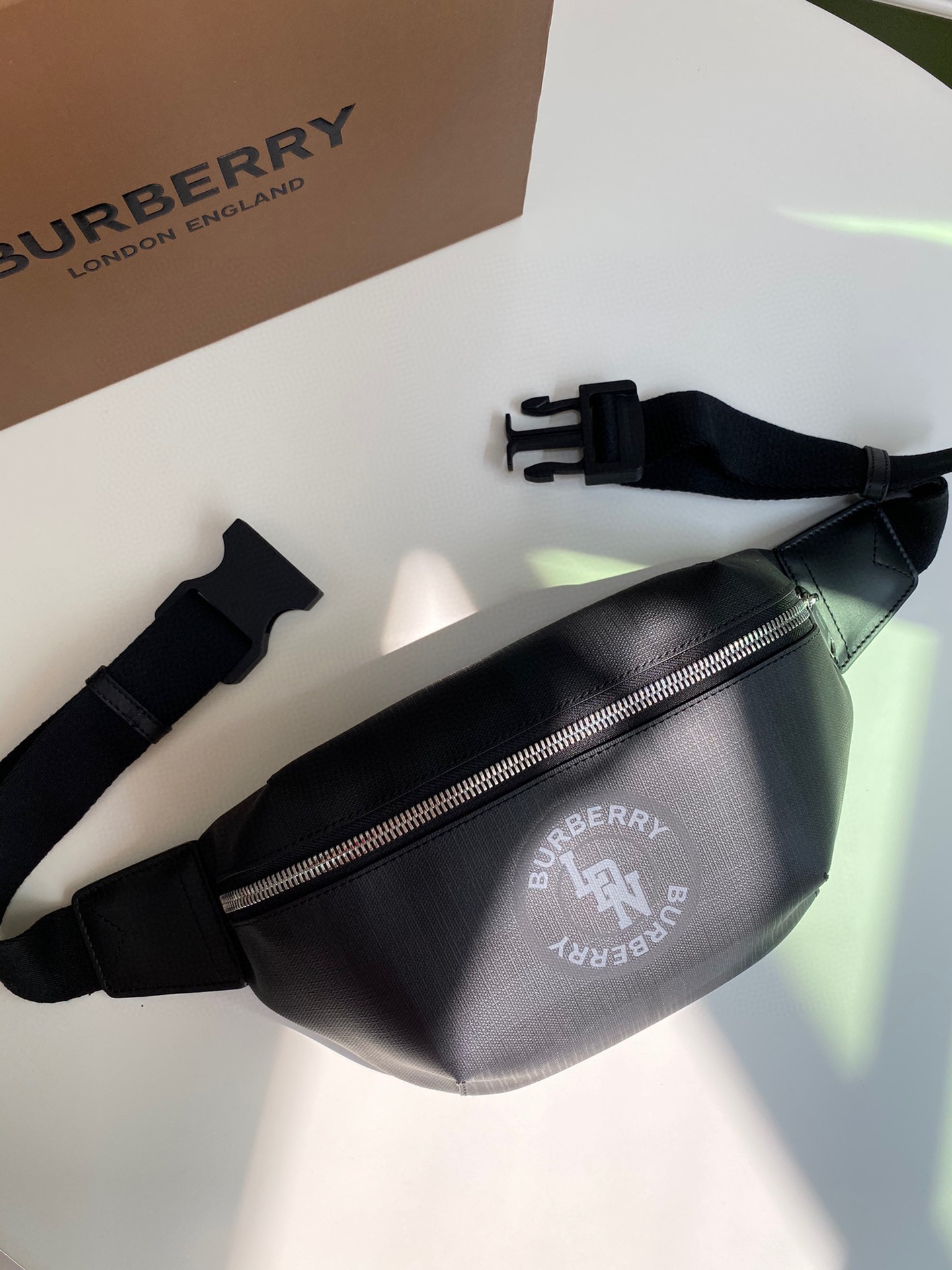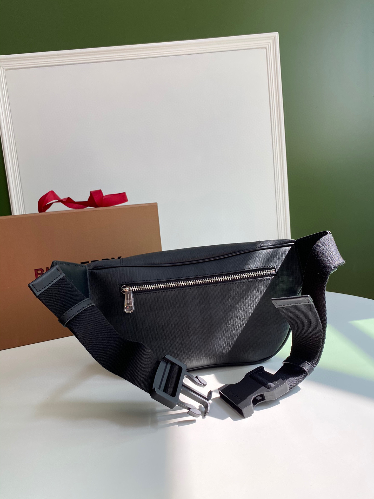 🎁B家新款腰包借鉴九十年代街头风格,装饰 London 格纹,搭配平滑皮革细节。可用背带斜背或系于腰部。31 x 7.5 x 16cm