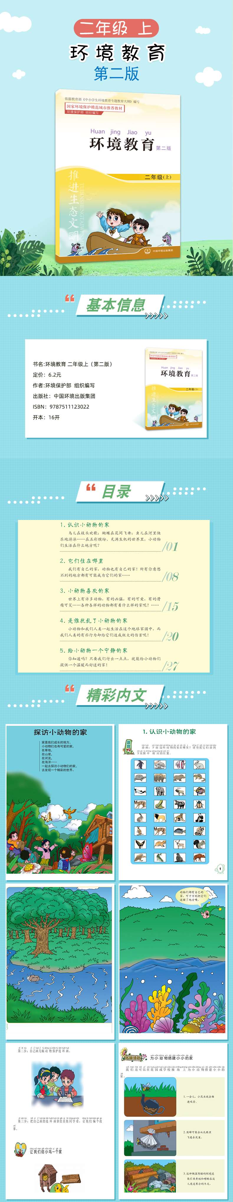 环境教育 第二版 二年级上 环保模范城市教材 环境科普读物 环境保护 中国环境出版社 9787511123022