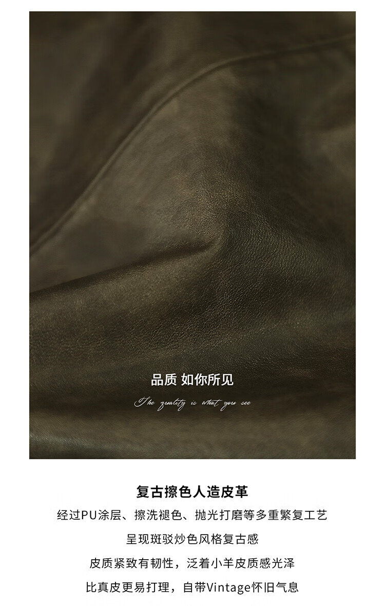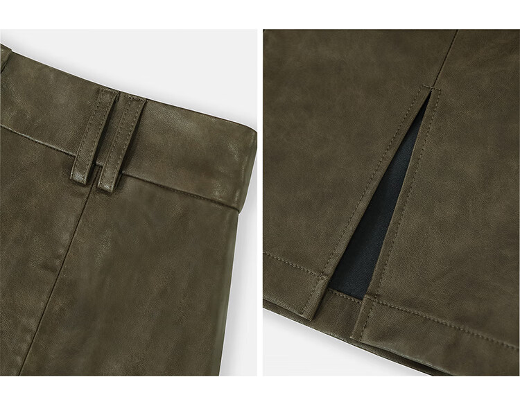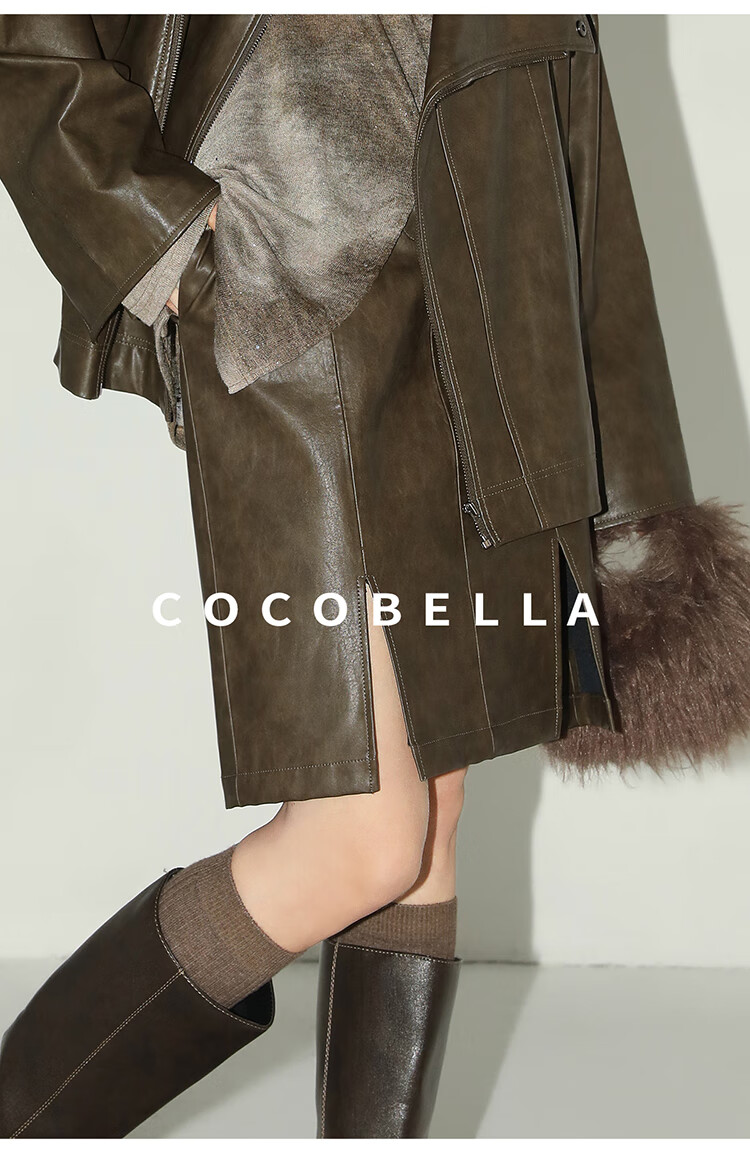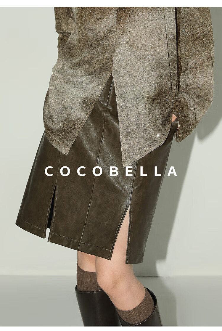 COCOBELLA复古风手工擦色前开叉PU皮裙女秋高腰半身裙PU0015