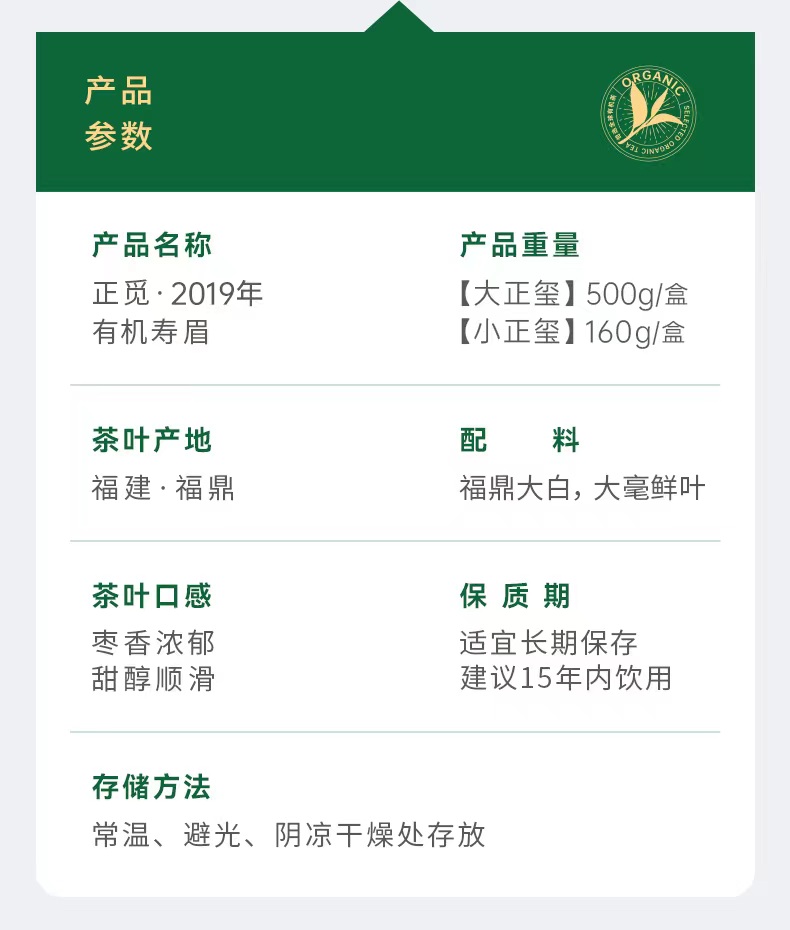 有机寿眉2019 500g/盒