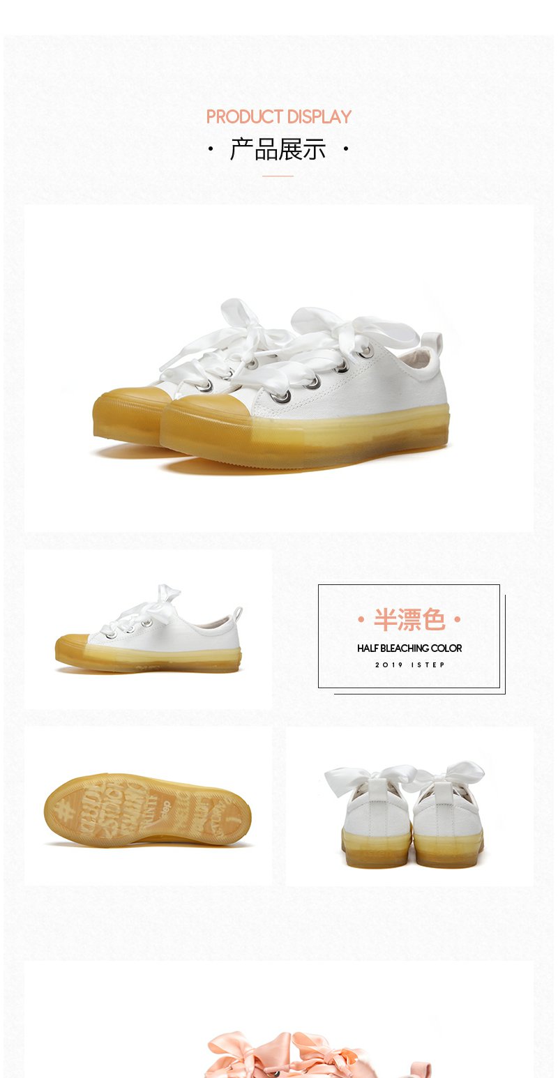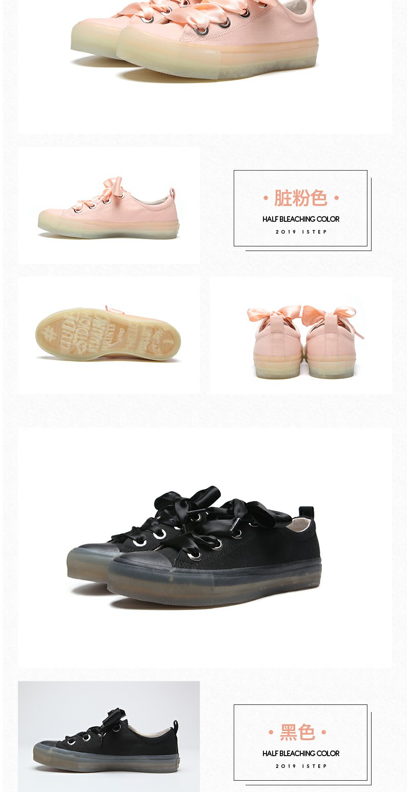 【正品】iSTEP小白鞋女低帮丝带港风休闲透明底帆布鞋女2022新款原创女鞋