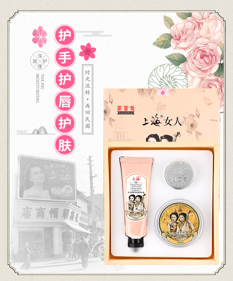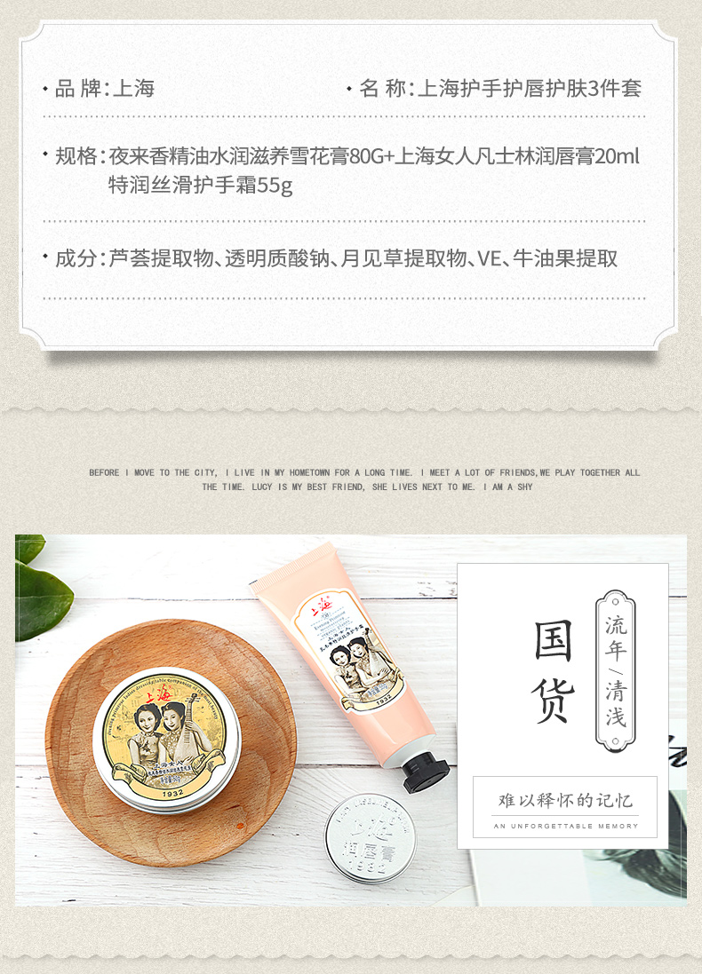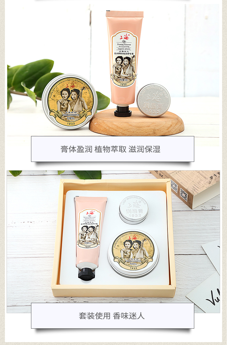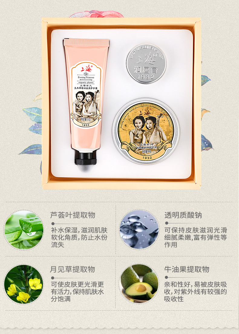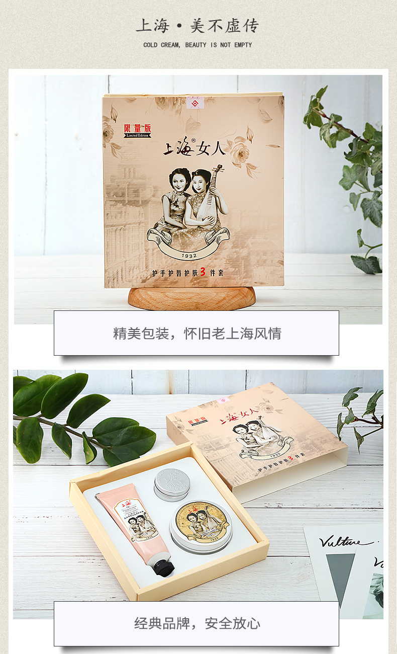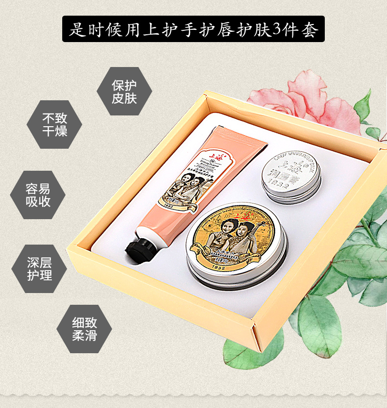 上海女人护手护唇护肤三件套礼盒·雪花膏+护手霜+润唇膏