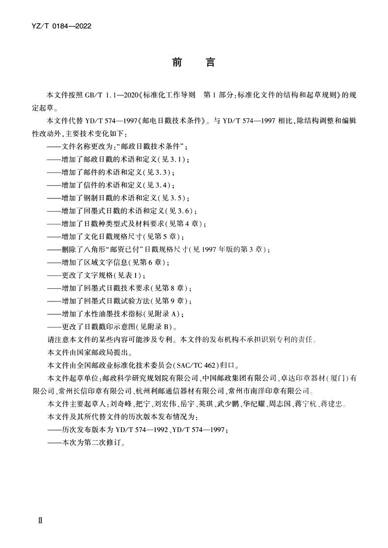 书名:邮政日戳技术条件(YZ/T 0184—2022)