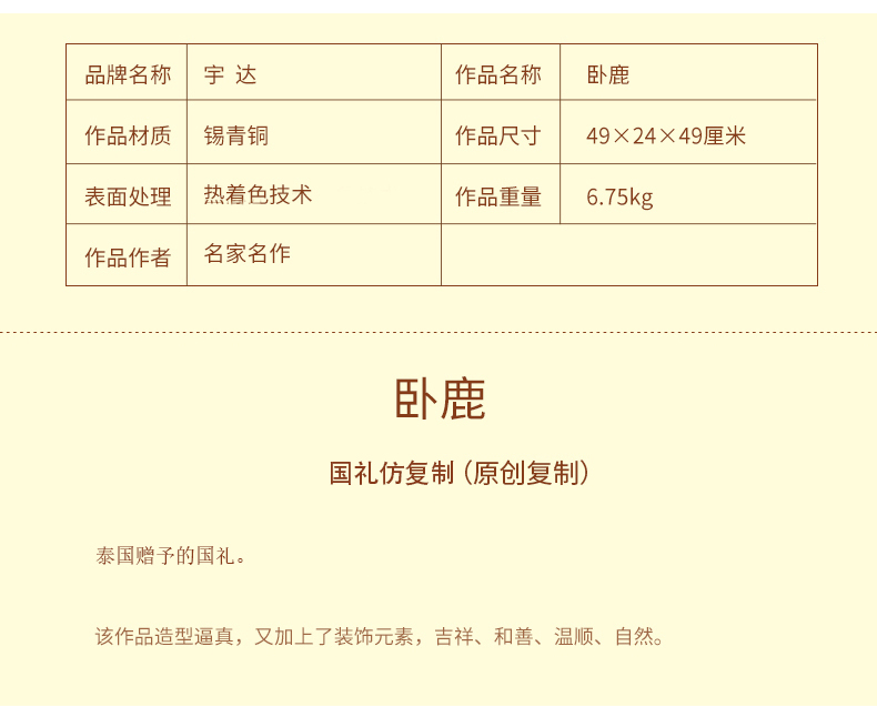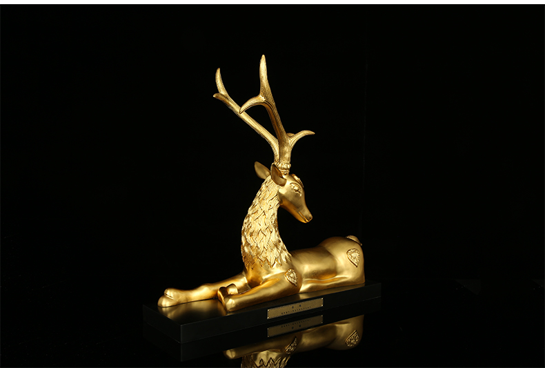 宇达青铜全铜摆件《卧鹿》仿复制国礼 贴金 家居装饰 工艺品摆件