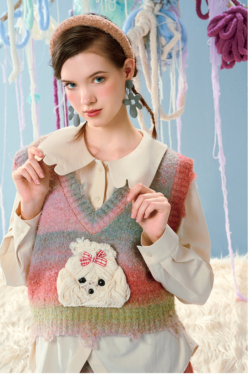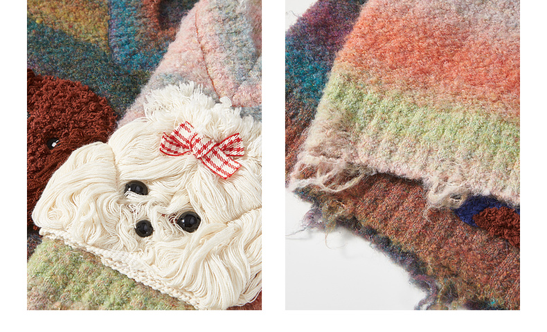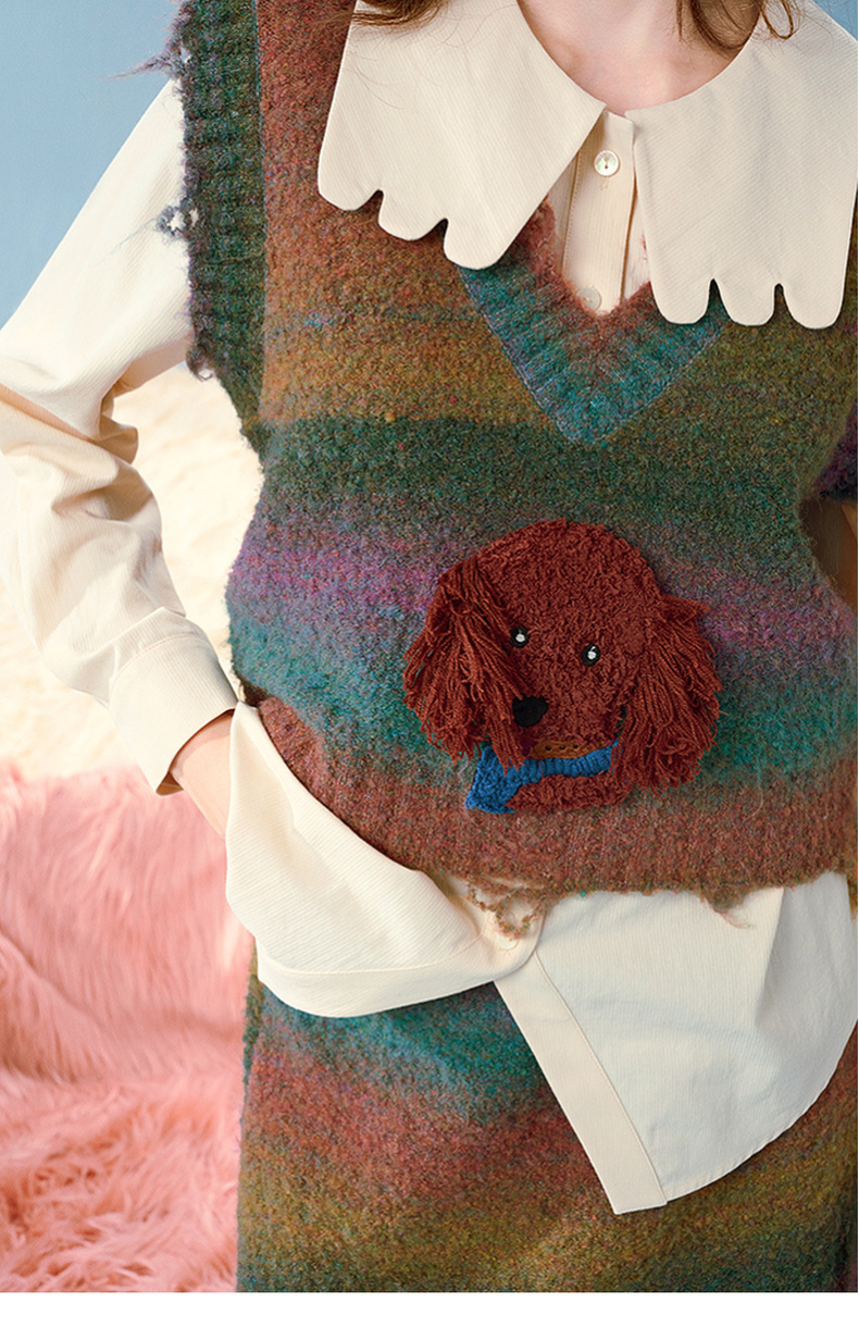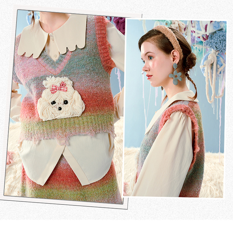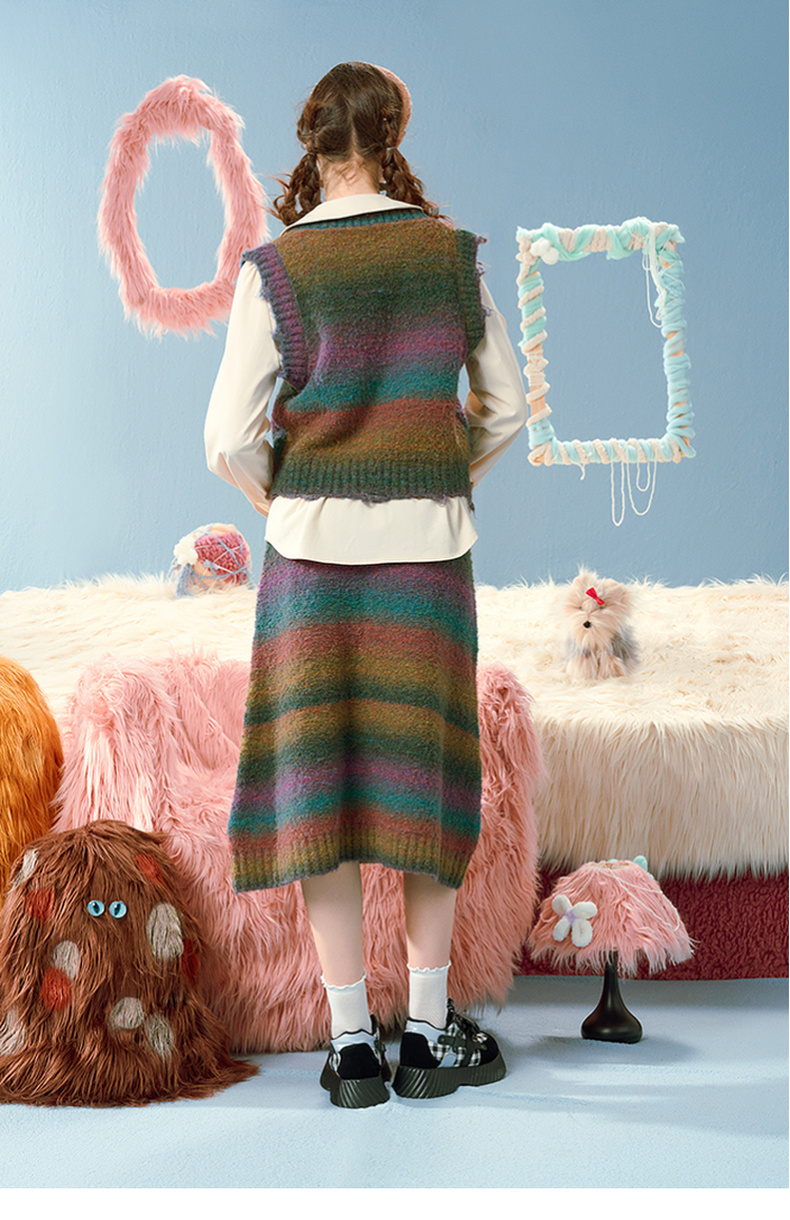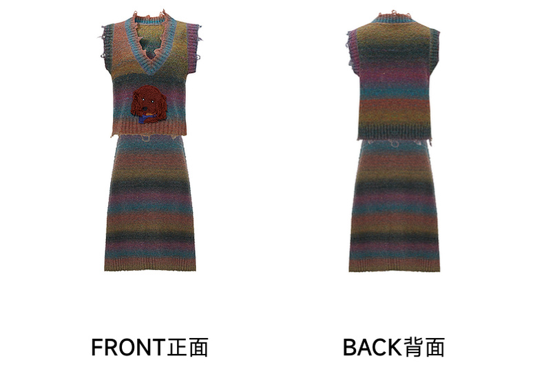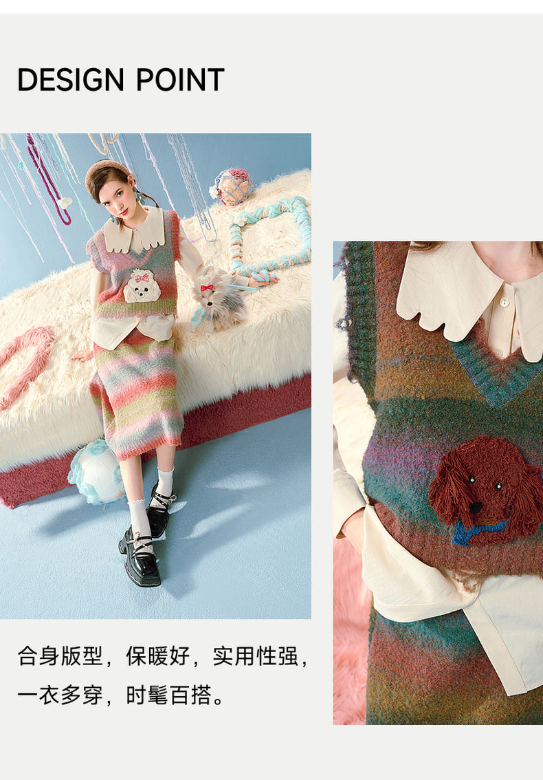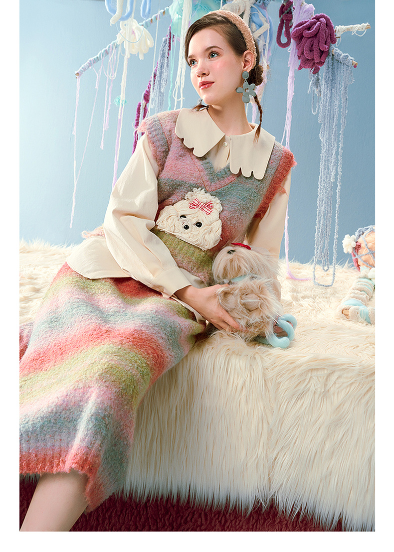 两三事马卡龙弥散立体动物装饰条纹毛织两件套女款