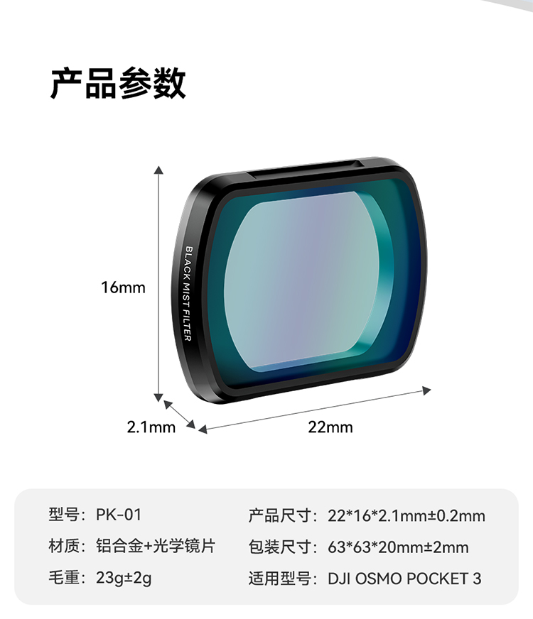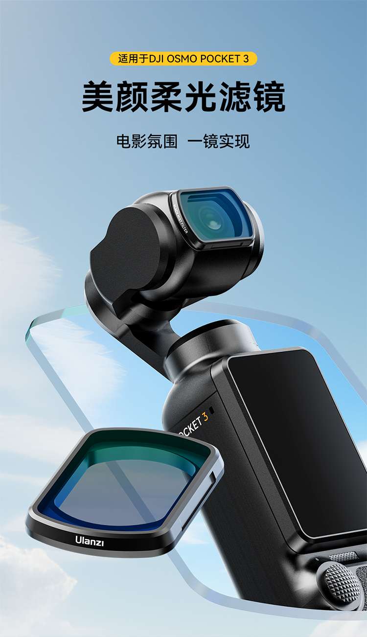 Ulanzi优篮子 PK01适用大疆OSMO Pocket3滤镜美颜柔光镜灵眸口袋云台运动相机专业拍摄镜头滤镜配件