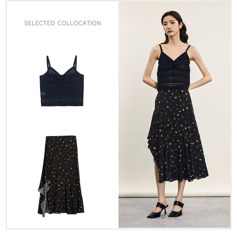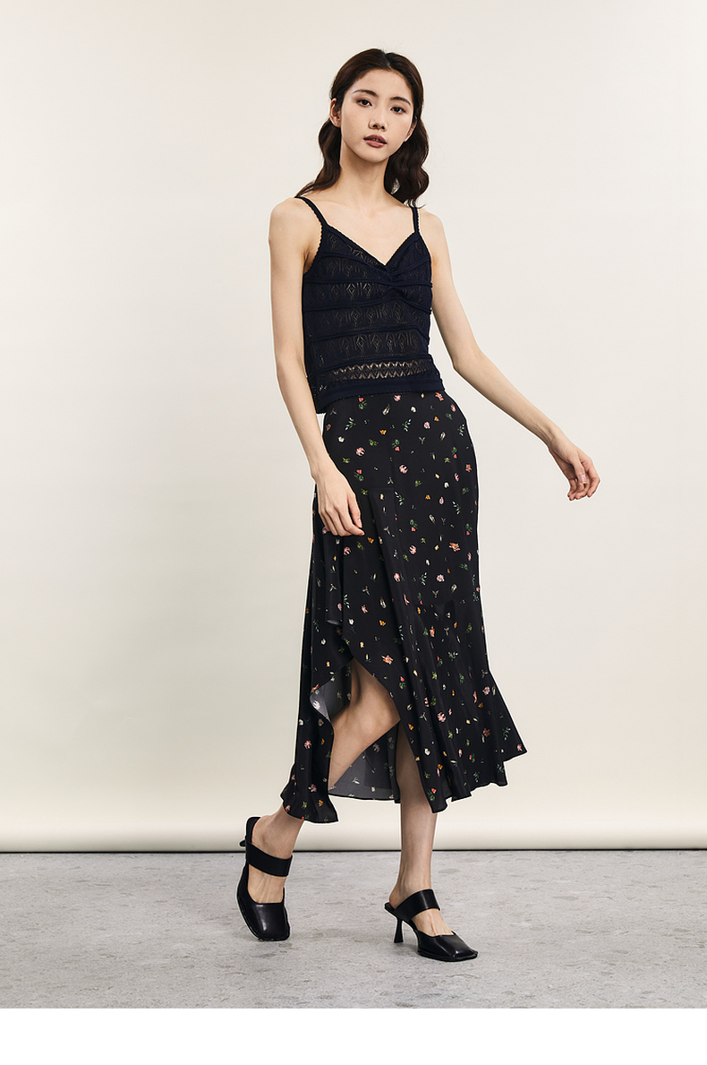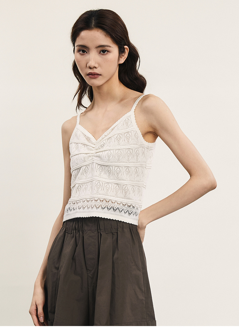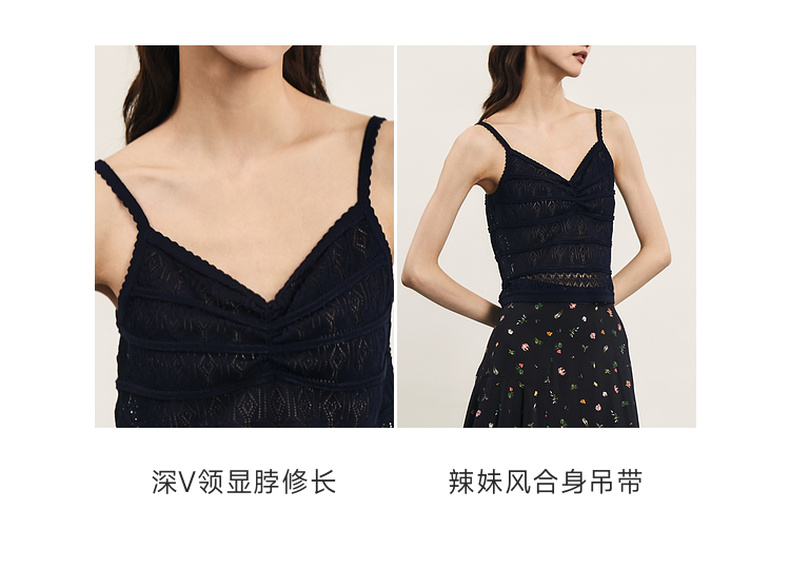 谜底针织小吊带2024年夏季新品复古优雅深V领修身内搭女242MZ0871