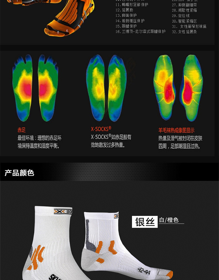 瑞士X-SOCKS马拉松银丝跑步袜子越野压缩速干防摩擦恒温透气保护