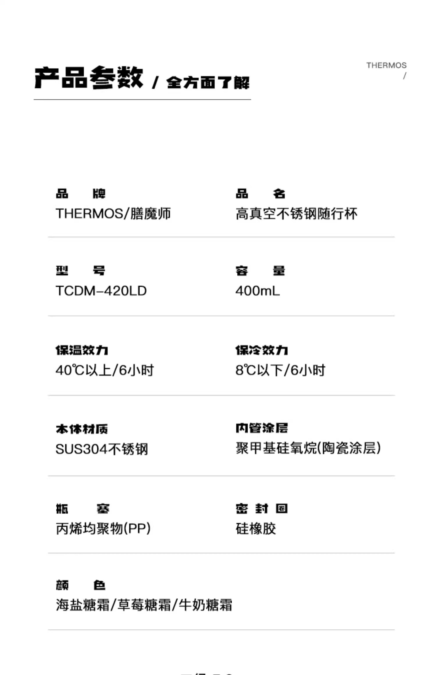 膳魔师保温杯咖啡杯便携水杯陶瓷内胆咖啡杯随行杯情侣杯TCDM-420LC