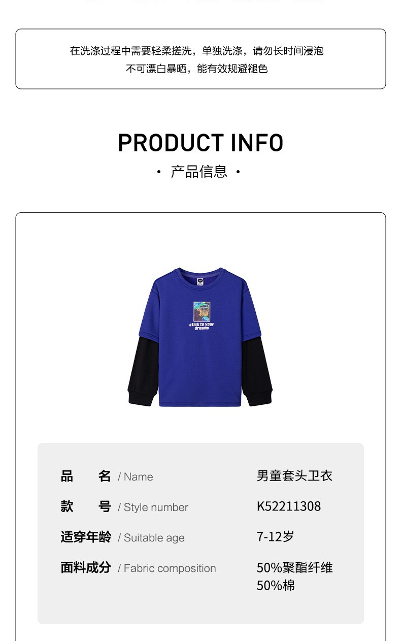 小361男童针织卫 衣假两件儿童套头上衣2022春季新款k52211308