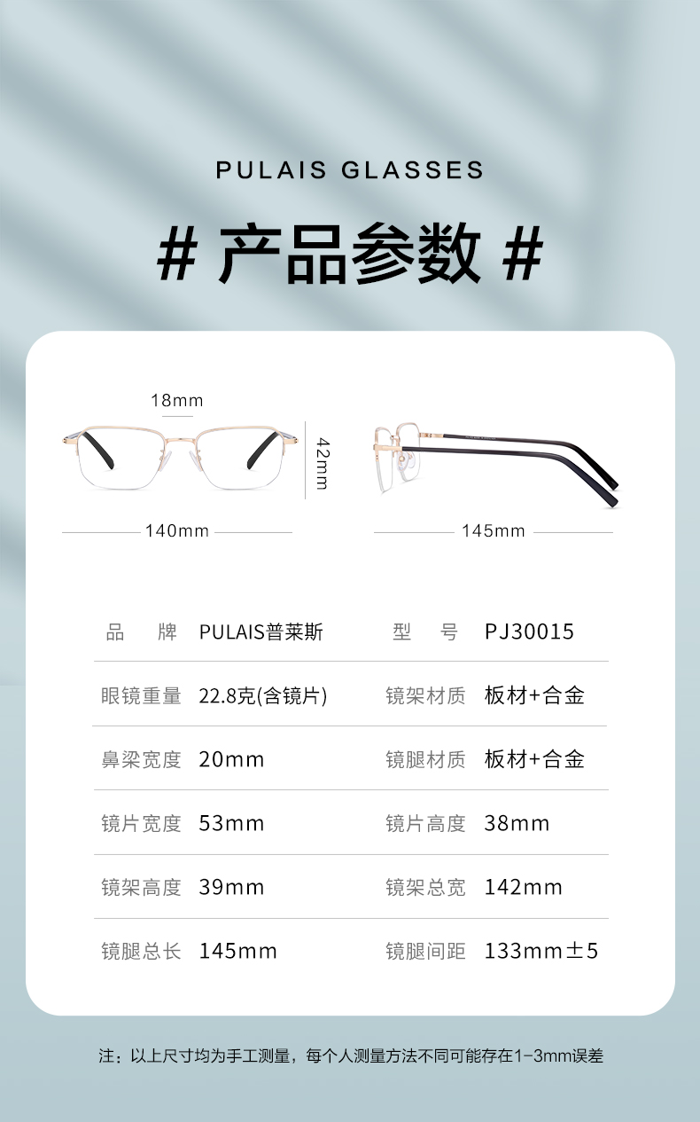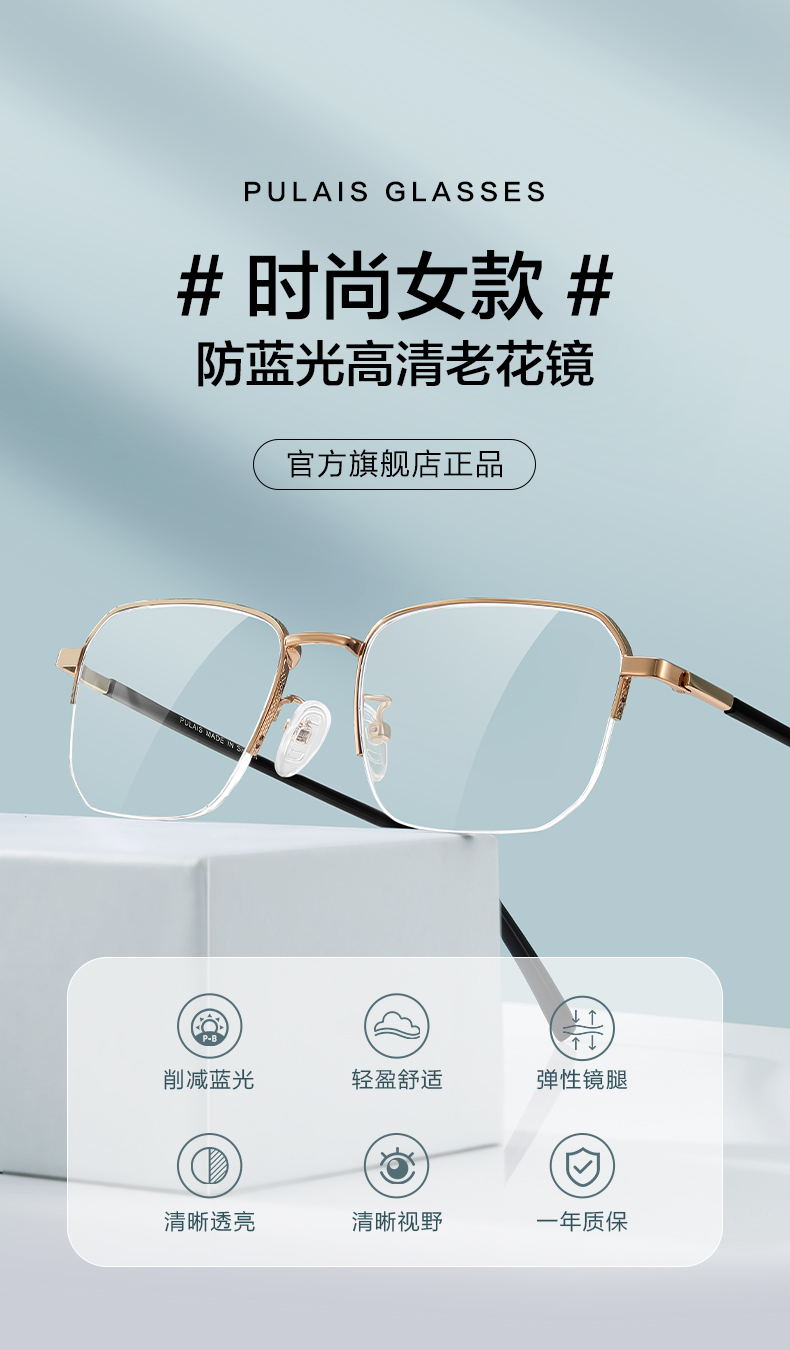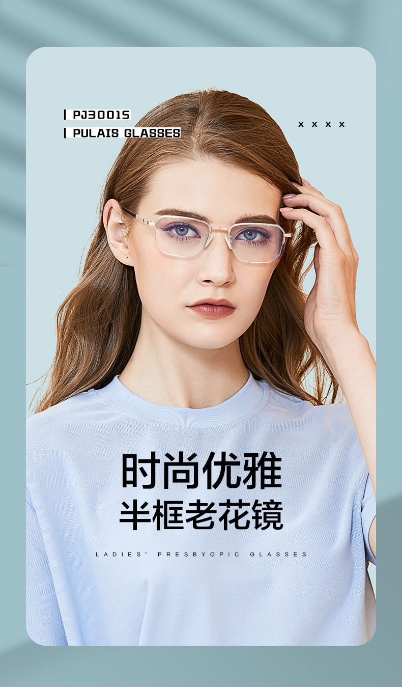 普莱斯PJ30015 老花镜 时尚优雅 半框时尚老花镜 板材+合金材质 单色可选