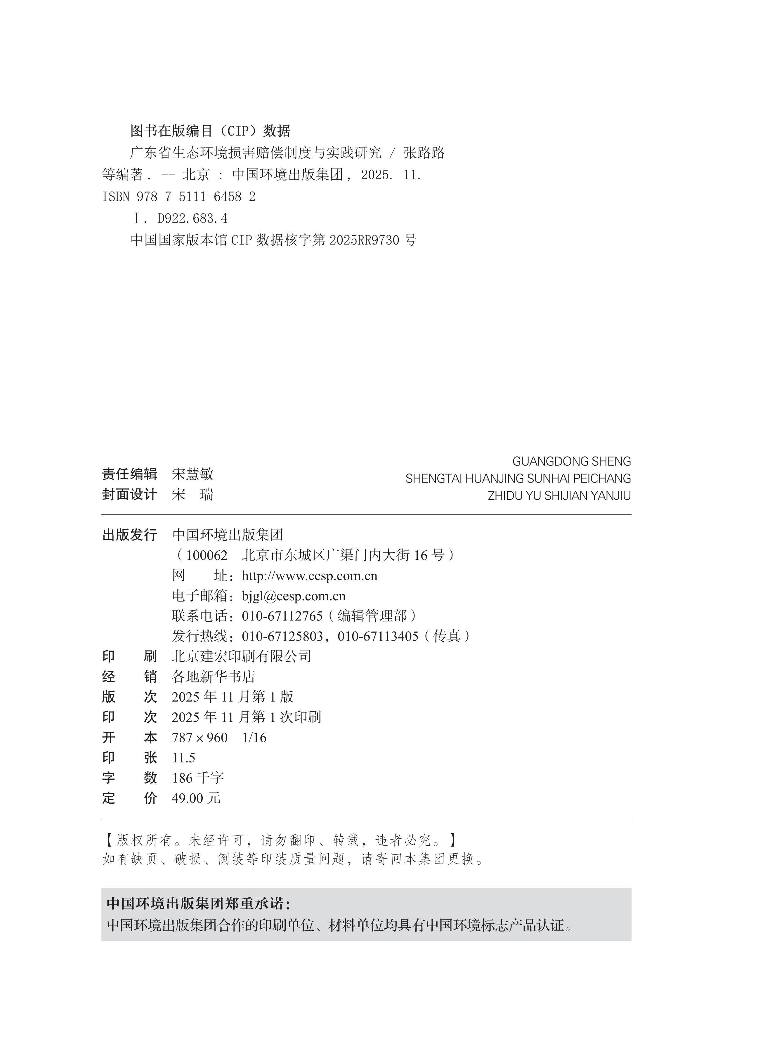 广东省生态环境损害赔偿制度与实践研究9787511164582