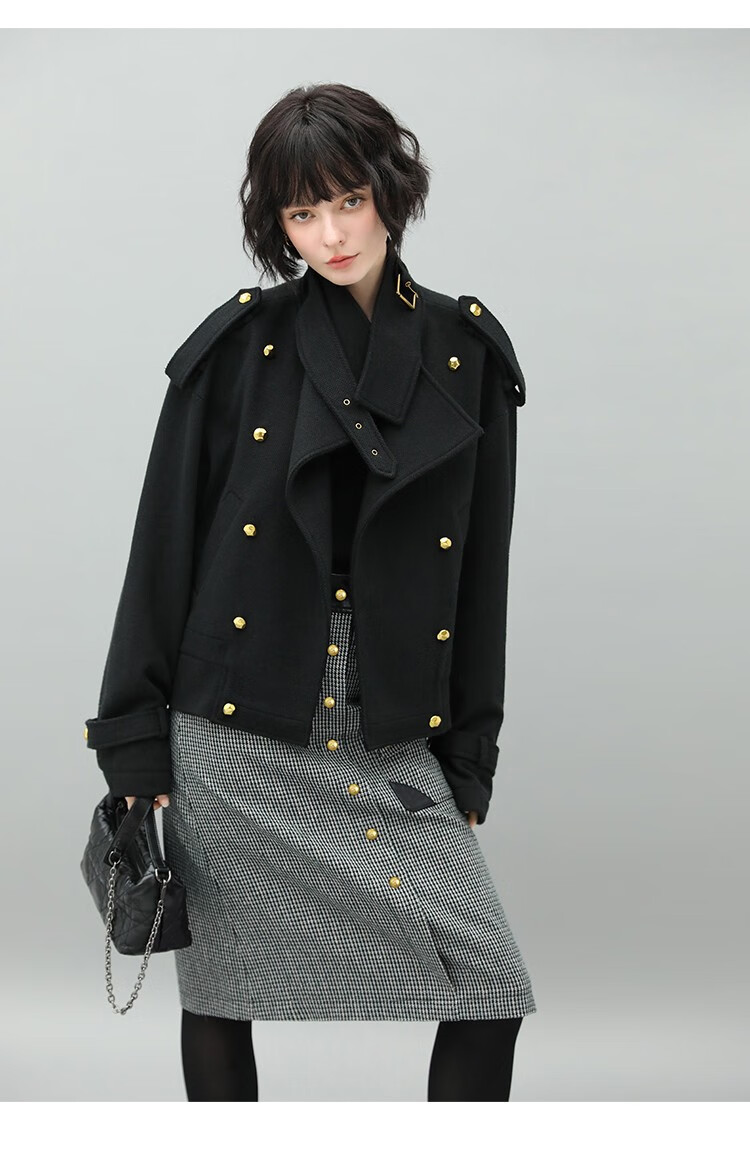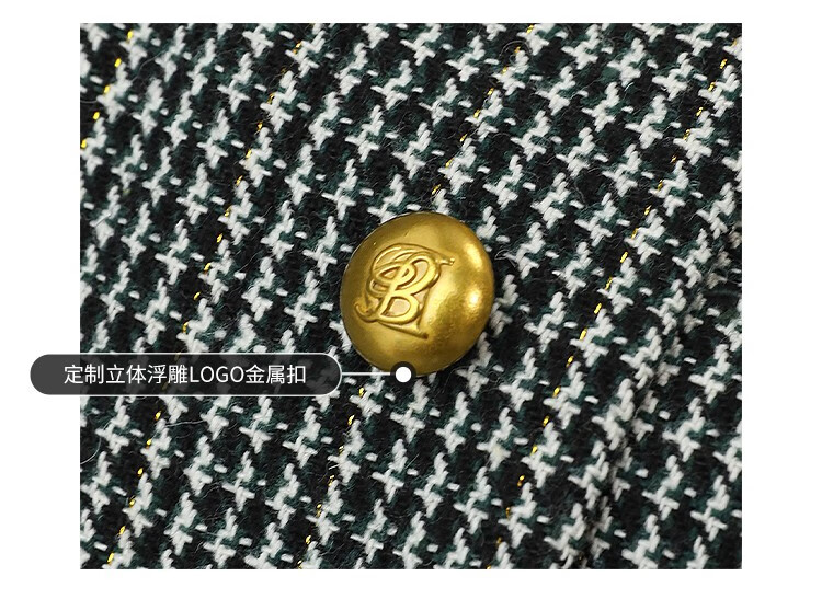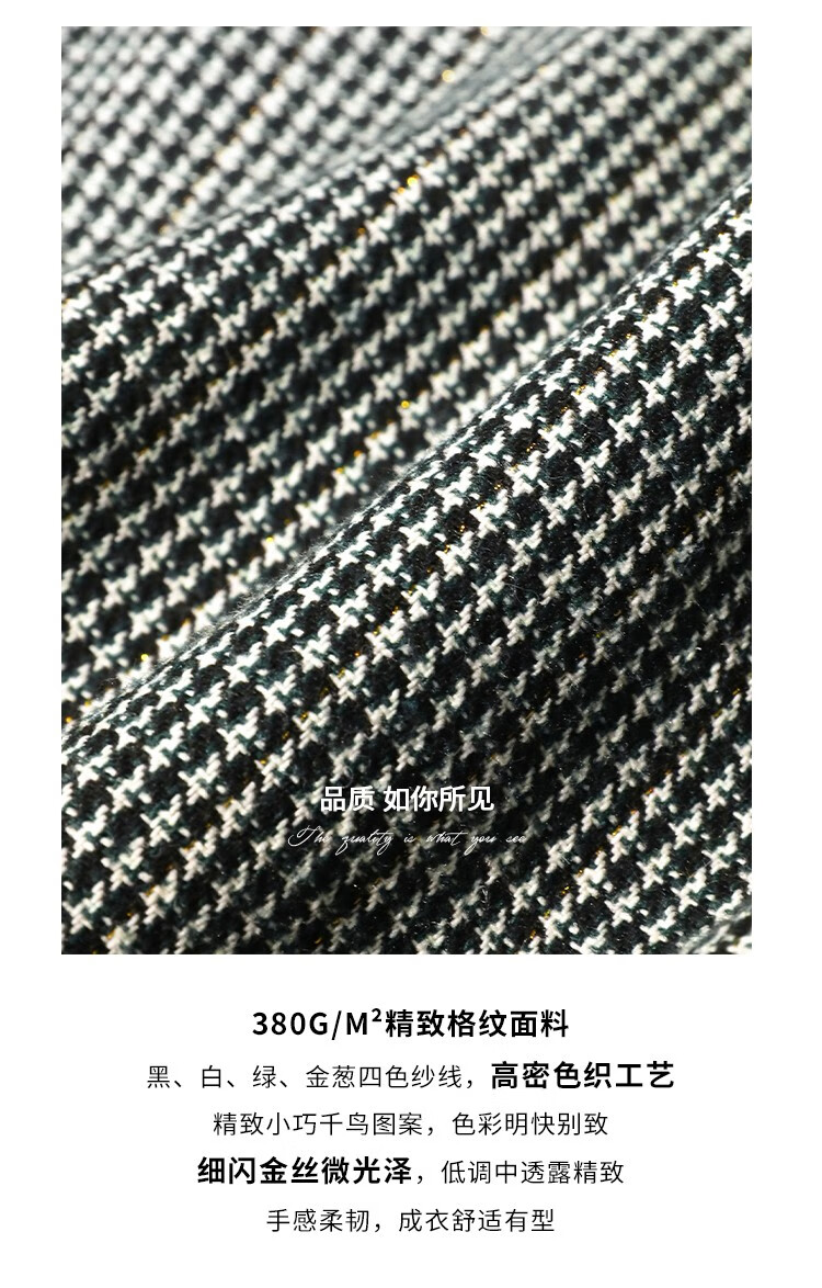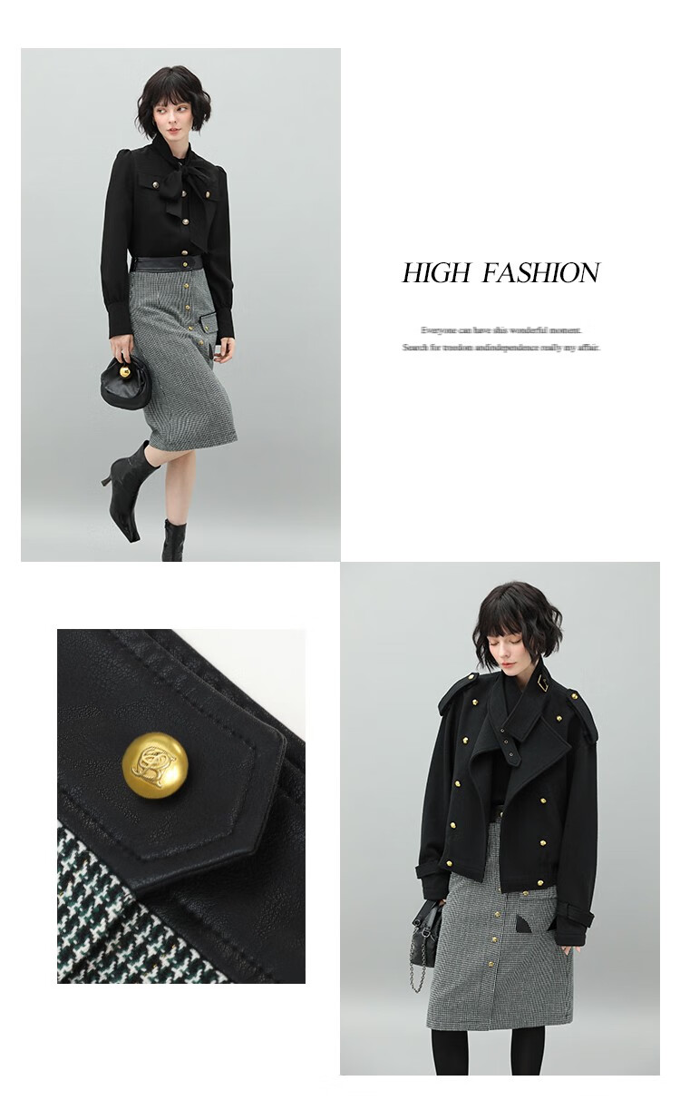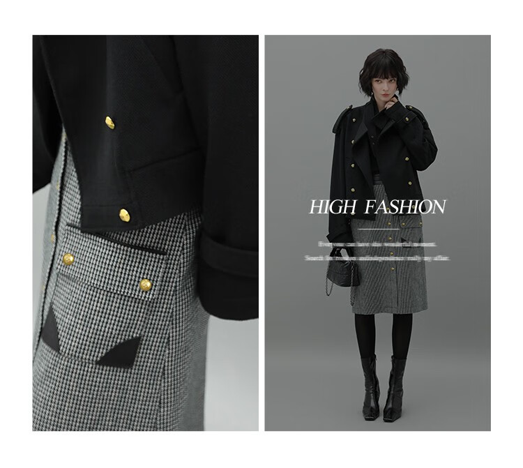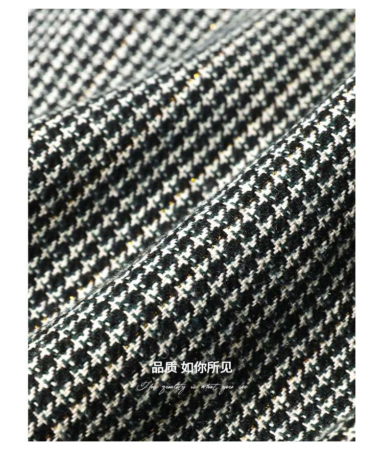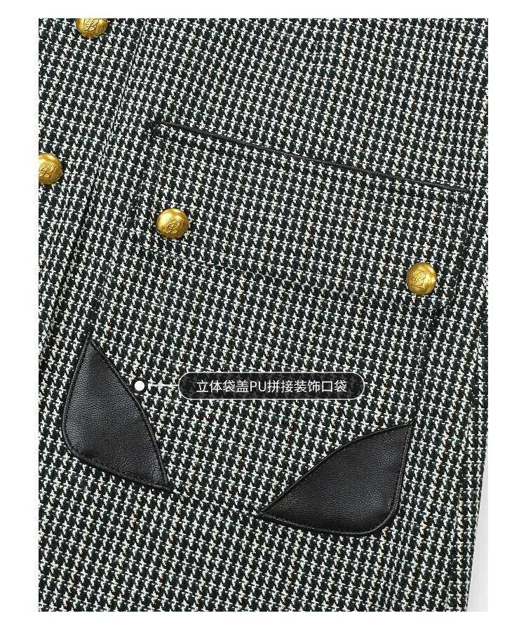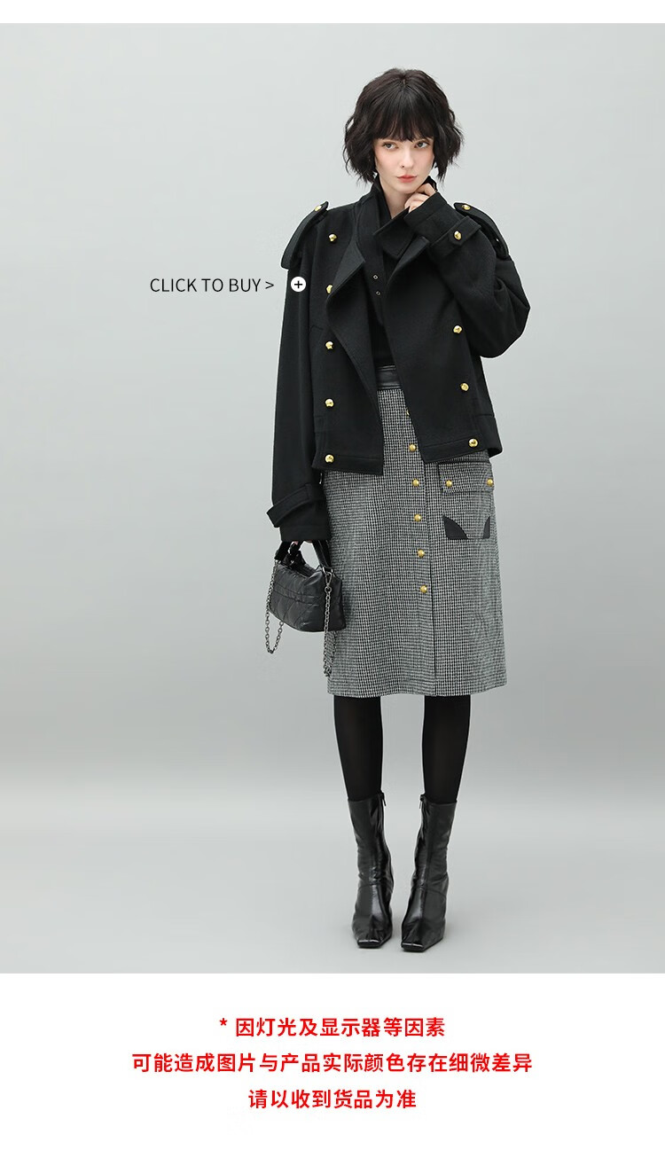 COCOBELLA质感PU拼接及膝千鸟格半身裙女秋冬气质A字裙HS551