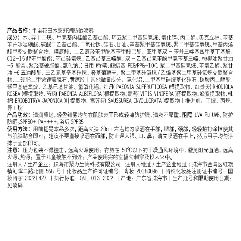 半亩花田 水感舒润防晒喷雾120ml[cs51]