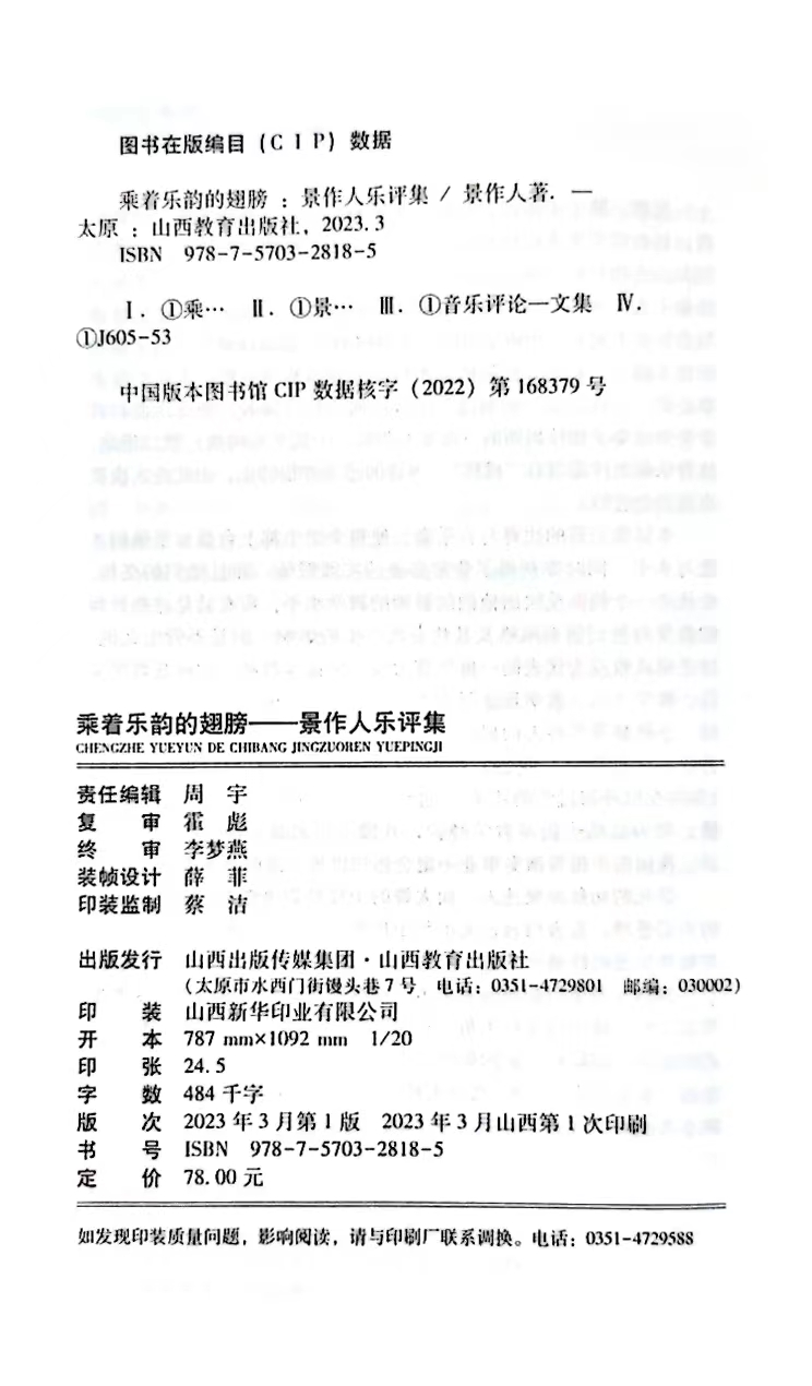 正版 乘着乐韵的翅膀 景作人乐评集 景作人 著 山西教育出版社