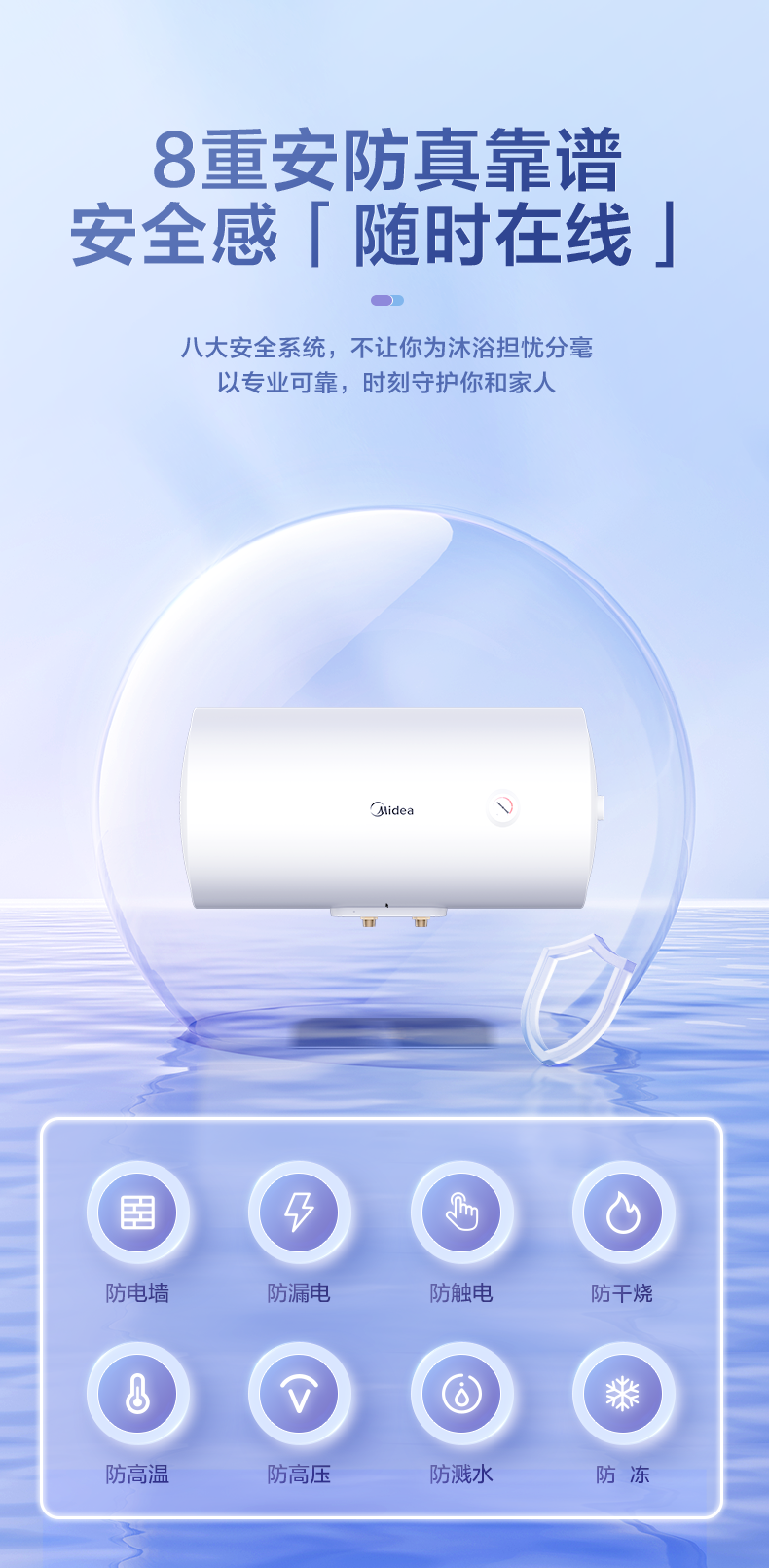 美的 F40-A20MD1(HE) 电热水器 极地白 防电墙版机械非智能
