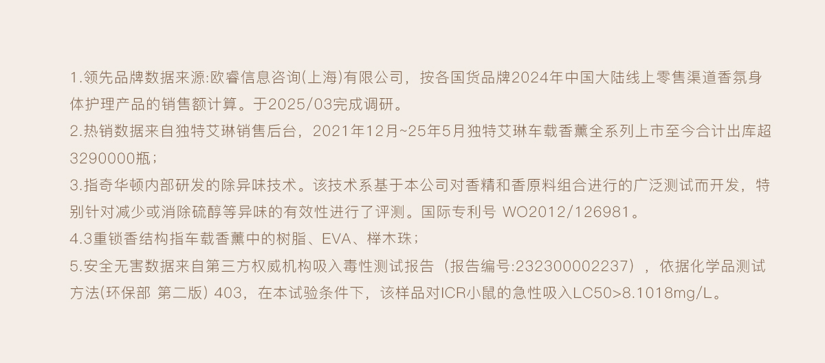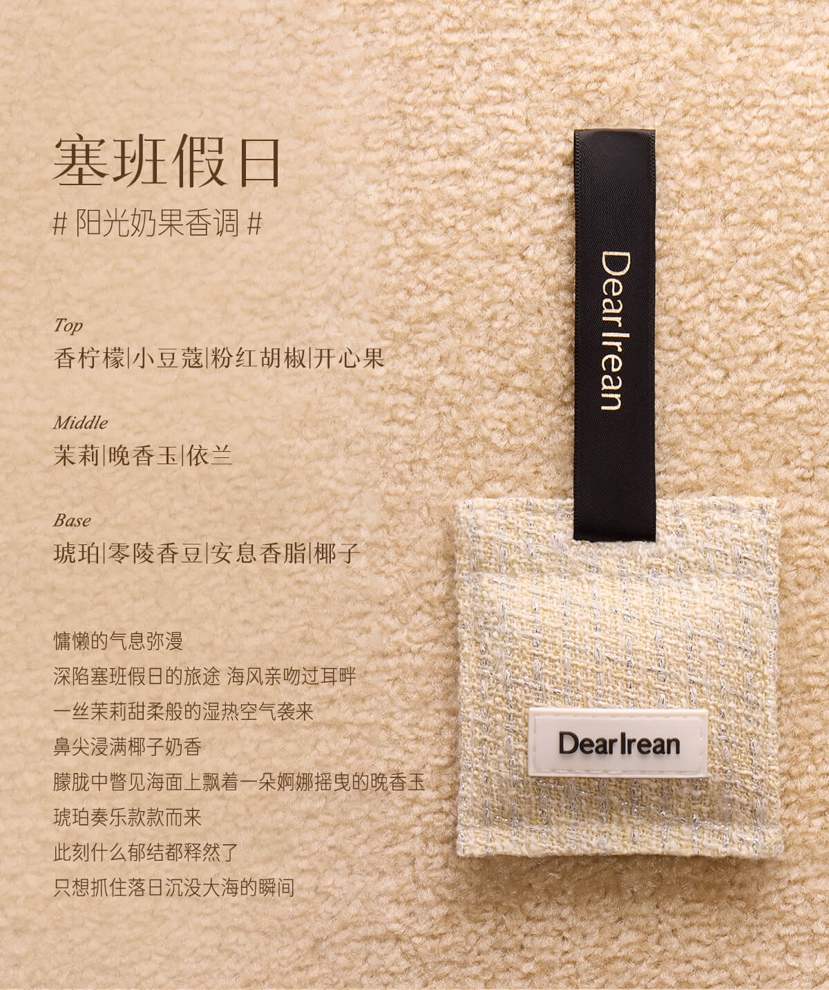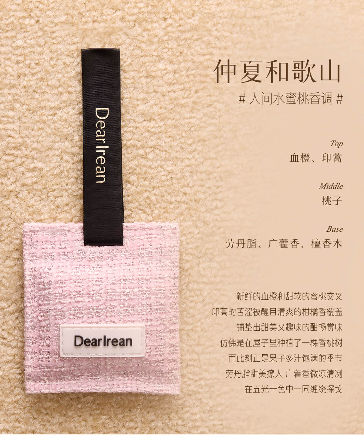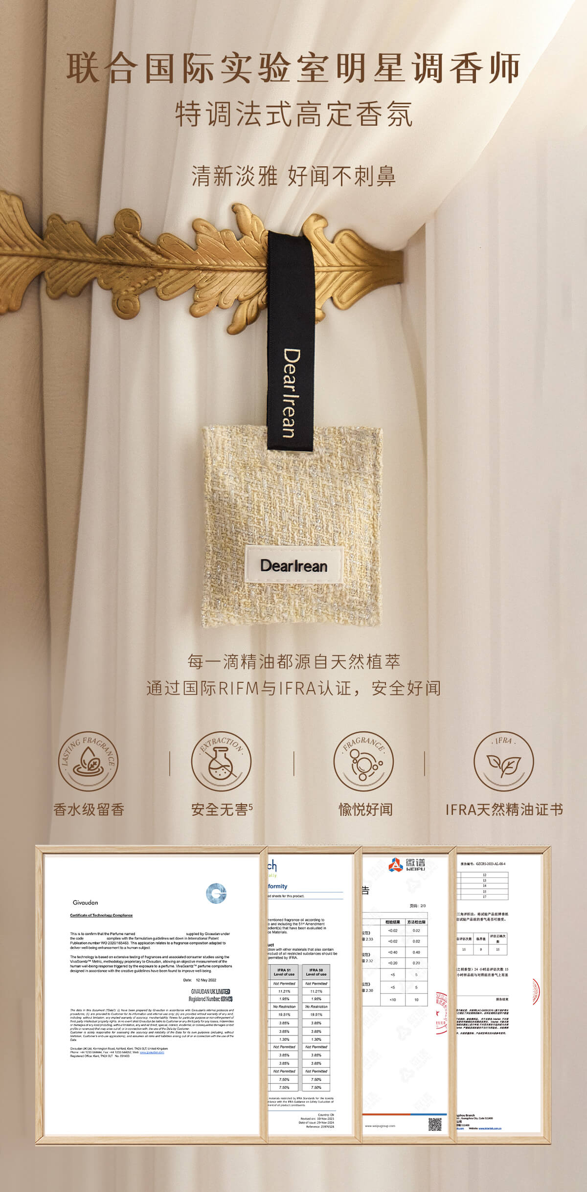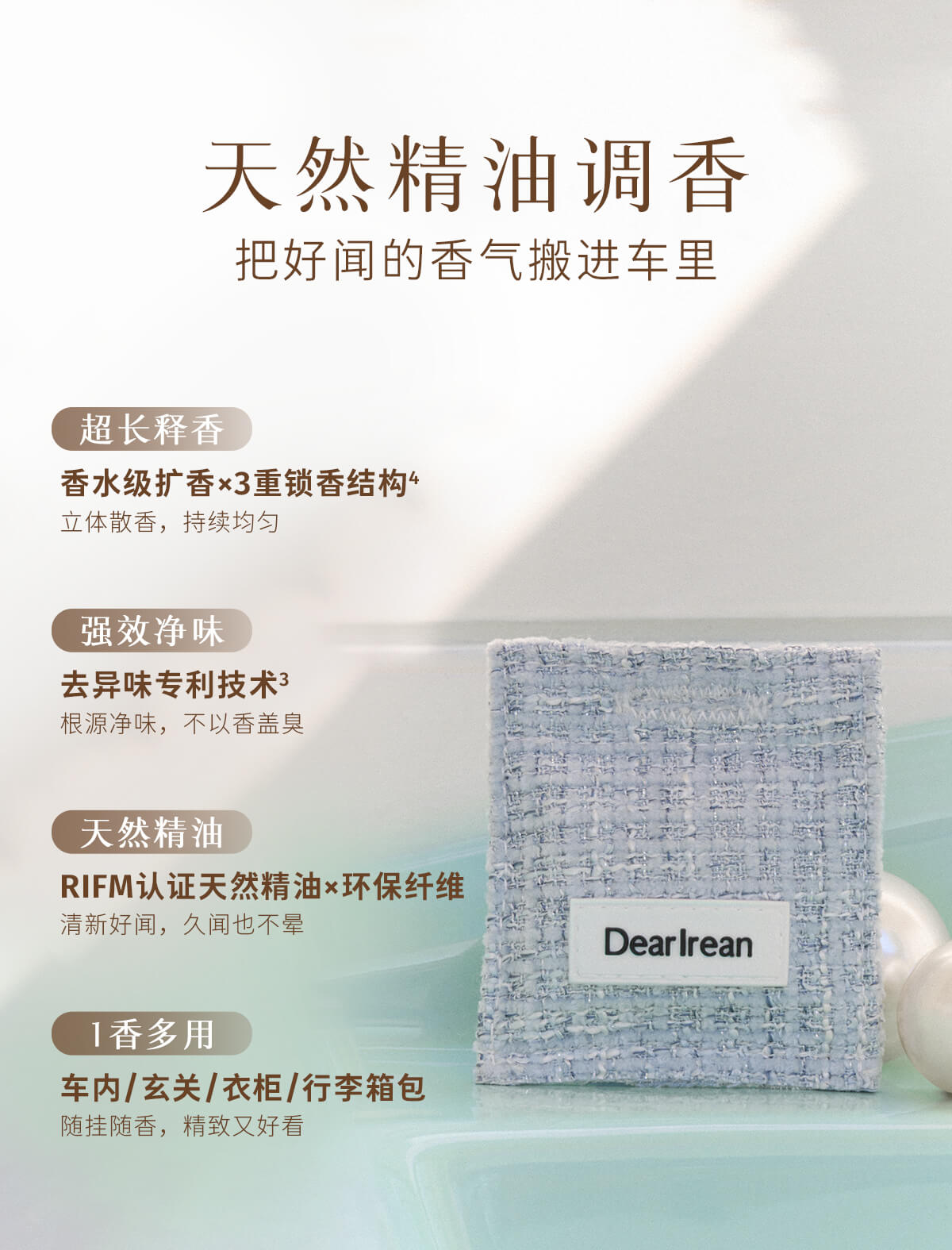 - DearIrean 独特艾琳,高定香氛生活品牌,拥有体•研究所,品牌致力于将高定香氛带入生活,同时倡导“以香之名,带给生活美好方式”的品牌理念,传递精致女性的爱、独立、自信。