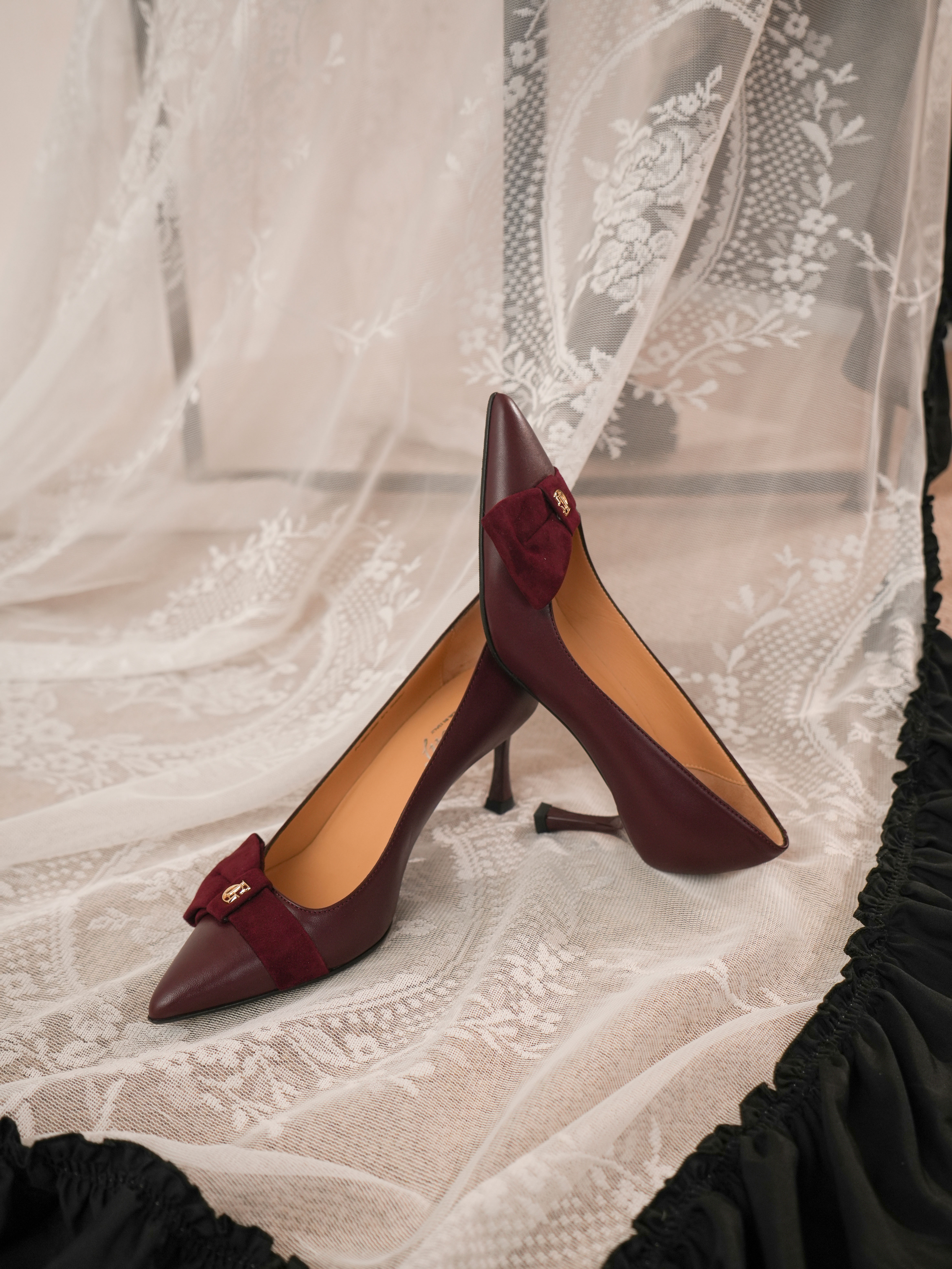 豪麟名鞋进口迪嘉女鞋皮鞋羊皮革W25381酒红色