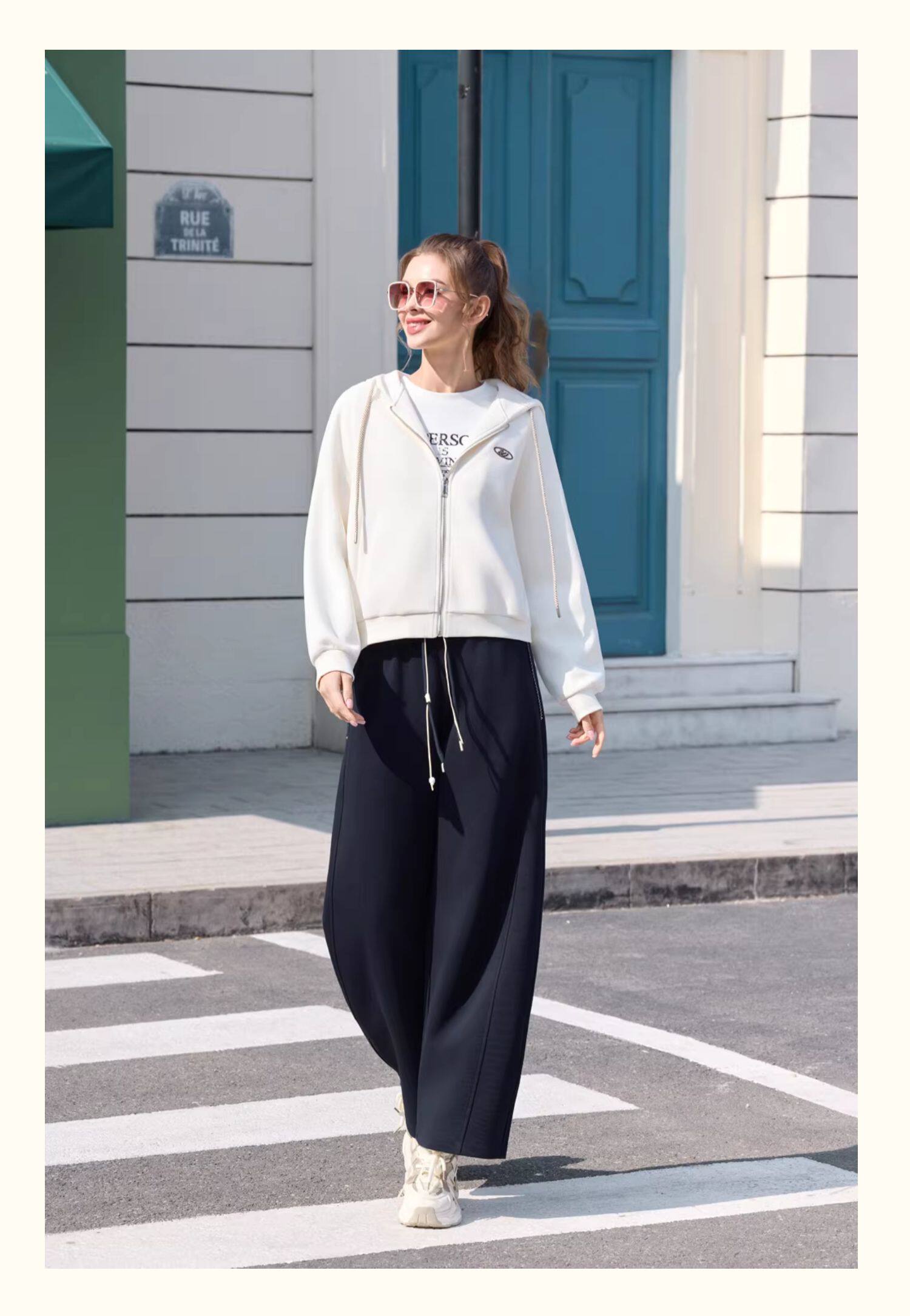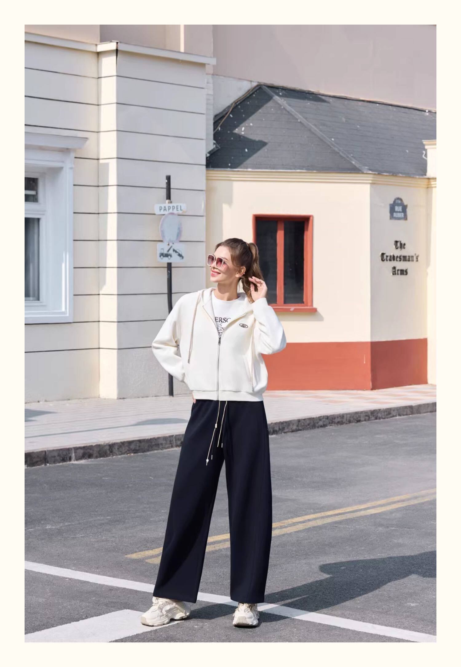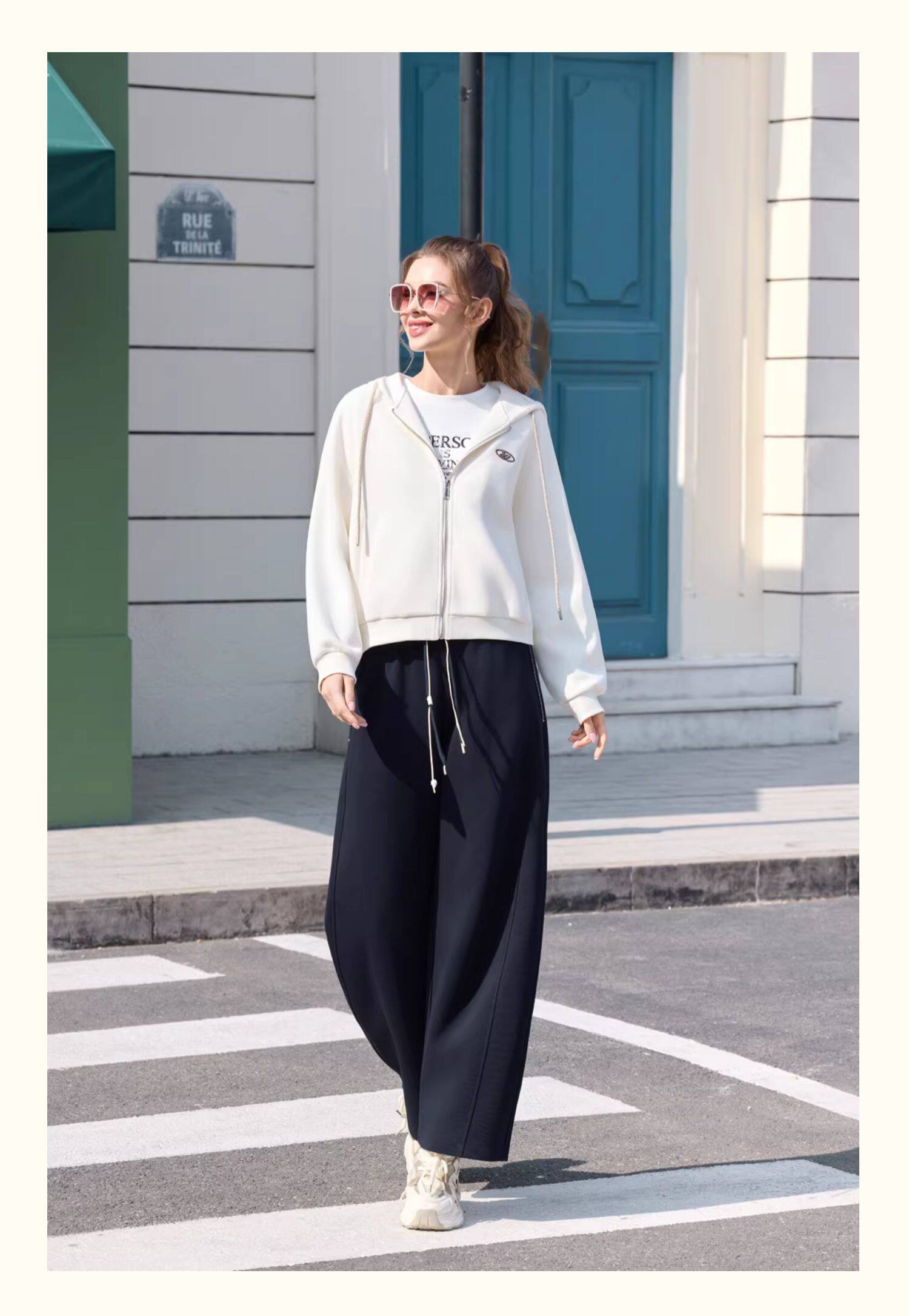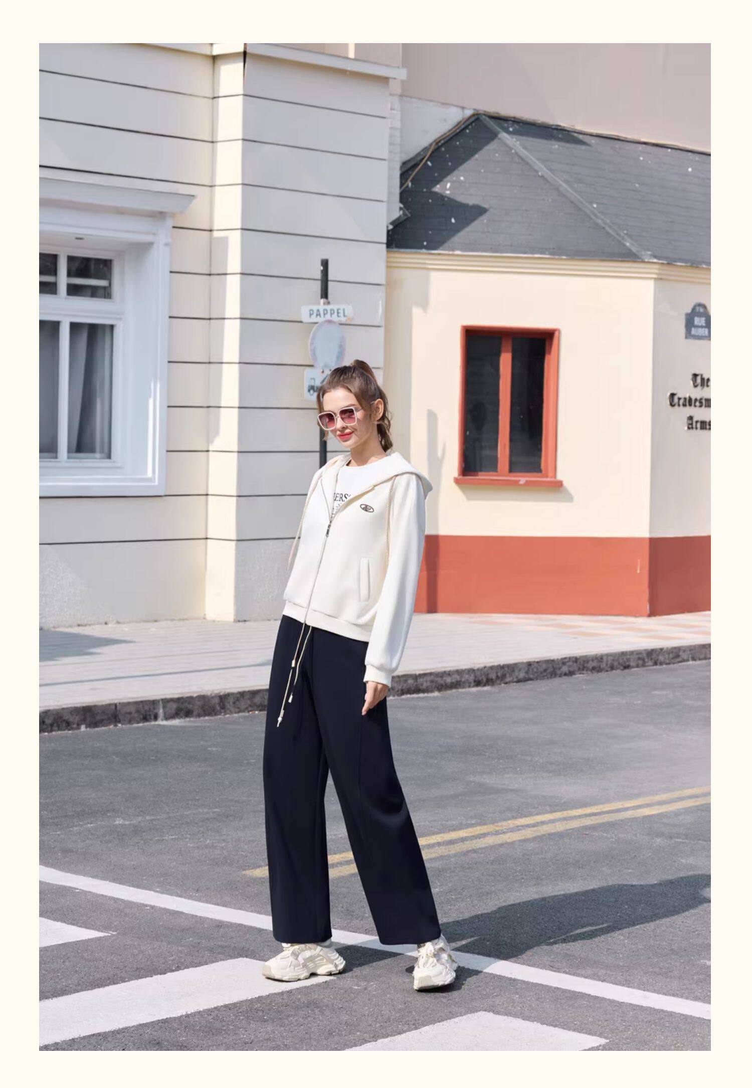 半身缘女装 春季潮流宽松精致刺绣拉链连帽卫衣261113P08040027