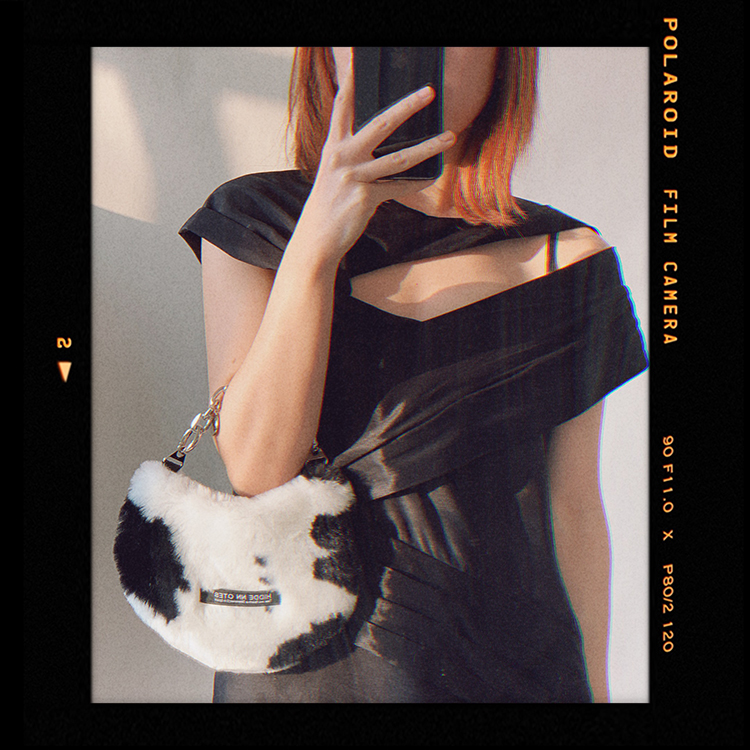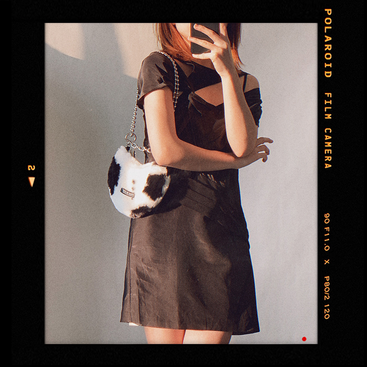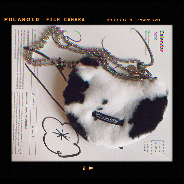〖HIDDENNOTES〗动物纹 黑白奶牛纹单肩腋下包 斜挎链条包手机包