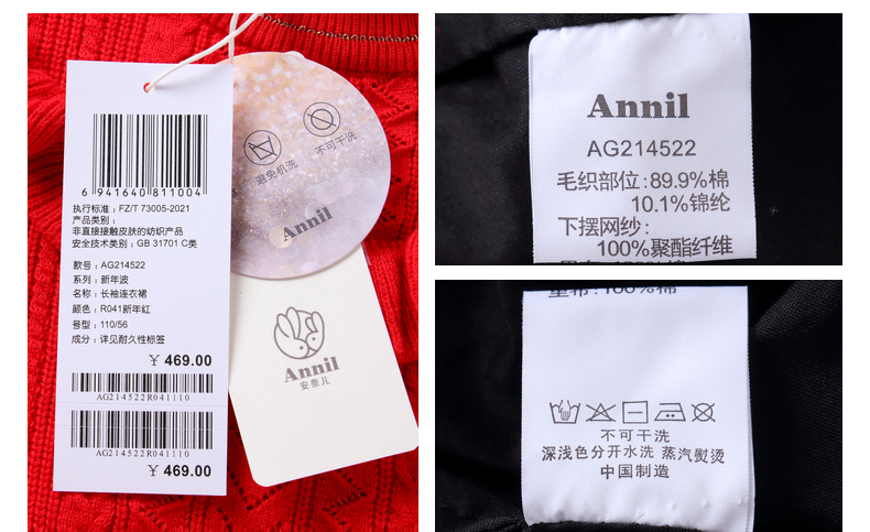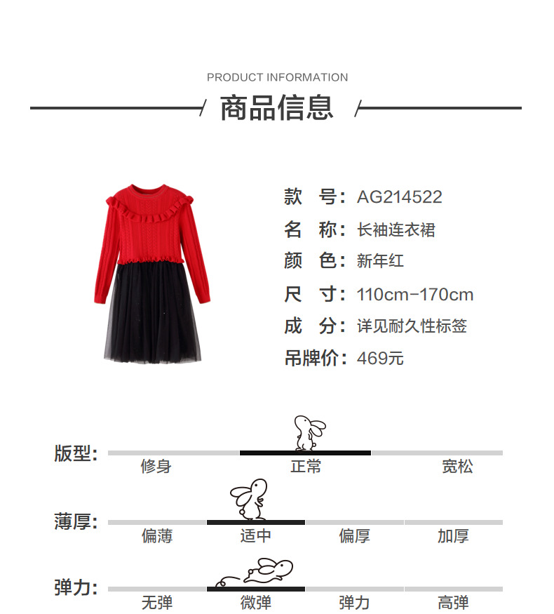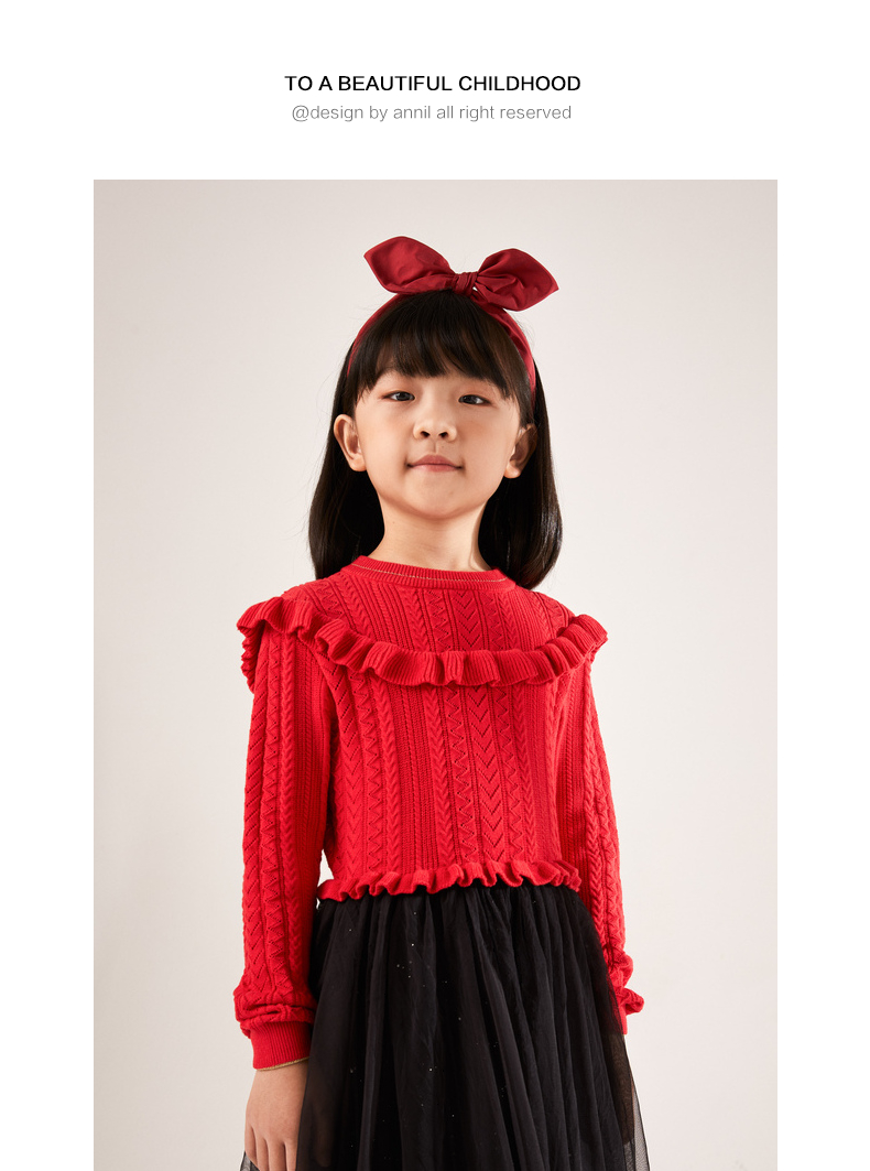 安奈儿2022春季新款女童长袖连衣裙ag214522