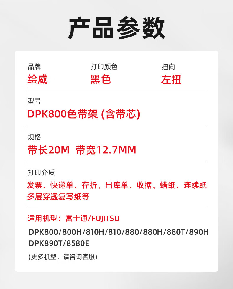 绘威DPK800色带适用富士通FUJITSU DPK800 810 8580 6850 810H 810P 820H 880H 针式打印机