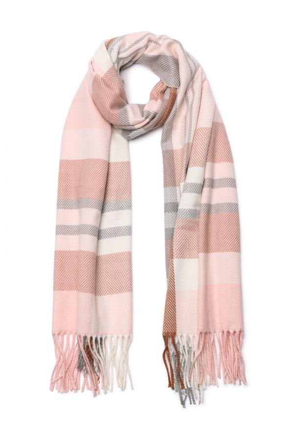 AVA 粉色格纹流苏围巾 8081