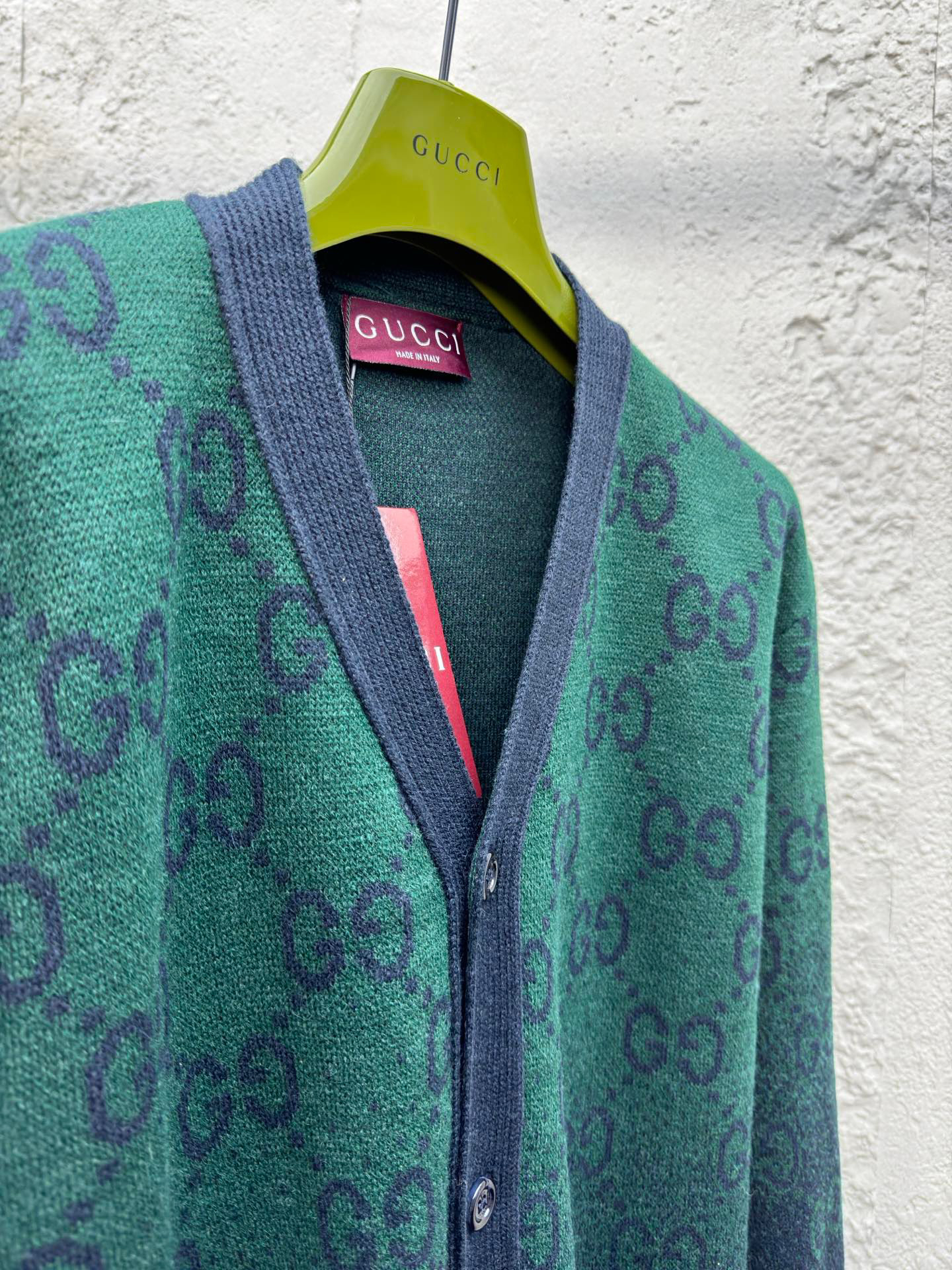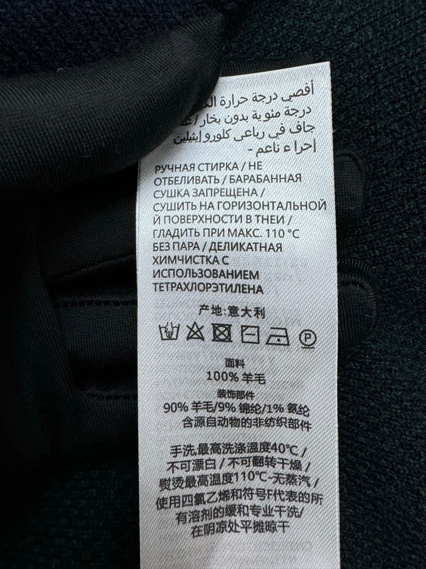 工艺说明:选用成本较高的高端100%臻品羊毛,参照原版进行1:1打色及定染纱线,颜色相似度高达95%以上,精纺羊毛和羊毛的区别在于感官效果上,羊毛一半绒面丰厚平整,手触有温暖感,折压后无折皱痕,毛料身松软,回弹性强,以Cixing5针机器,以提花组织进行双色渐变编织,耗时200分钟方可织出1件,平行均速编织,不会像普通电脑横机织,整体走线平直细腻 面料舒适柔软 颜色一致无色差 能与同款搭配营造时尚造型,驾驭各种场合,定制辅料,三标齐全,男女同款!