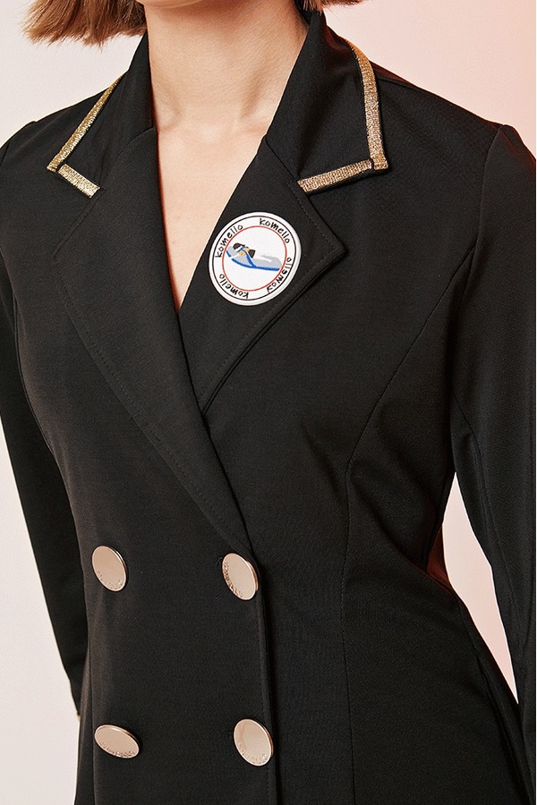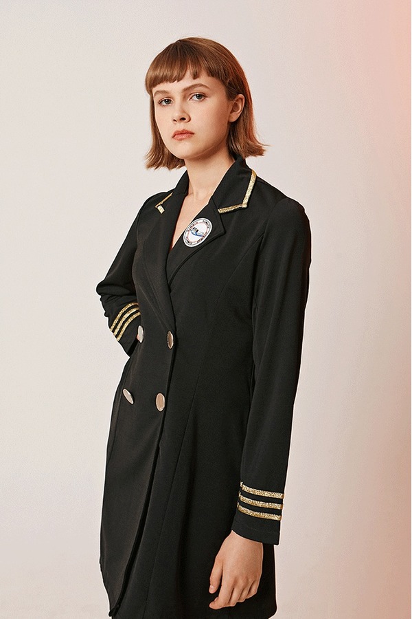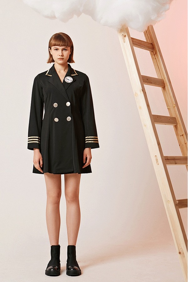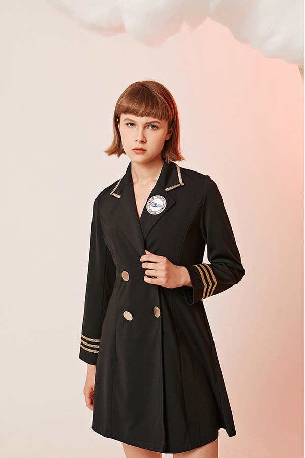 komello 金色织带学院风复古连衣裙 14574