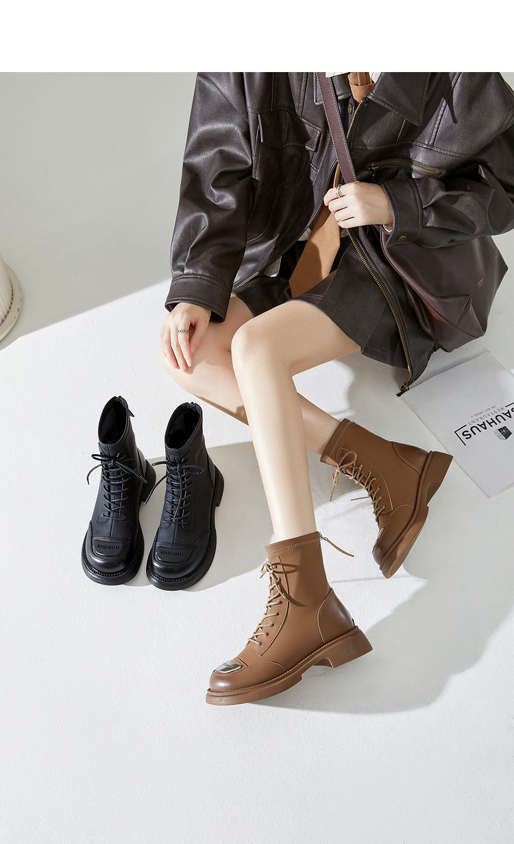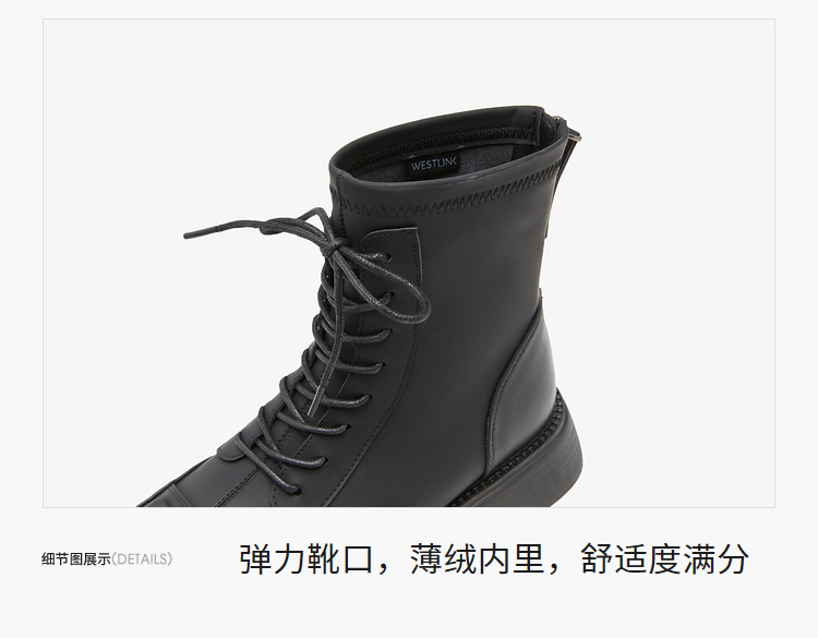 西遇英伦风马丁靴女新款秋冬甜酷小众配裙子中筒靴弹力短靴子D2234328