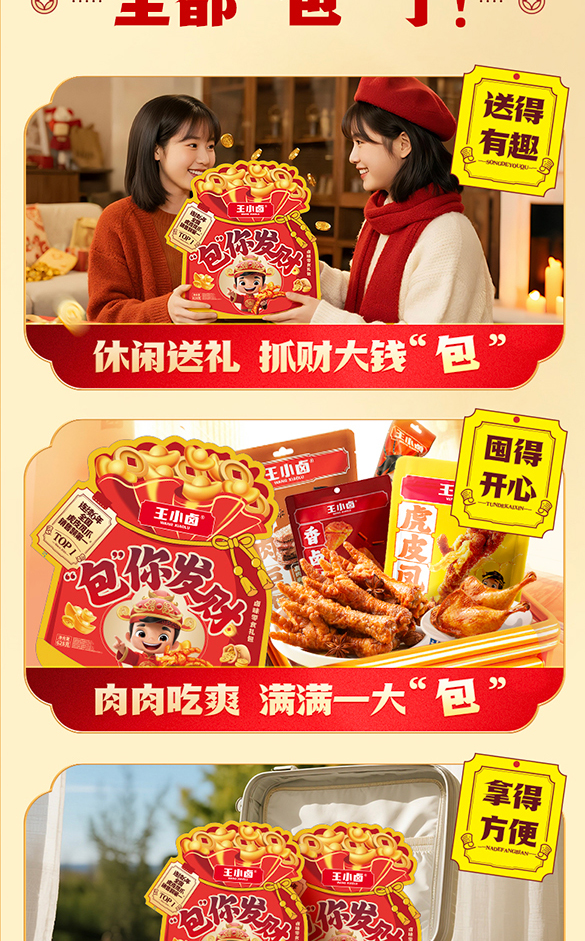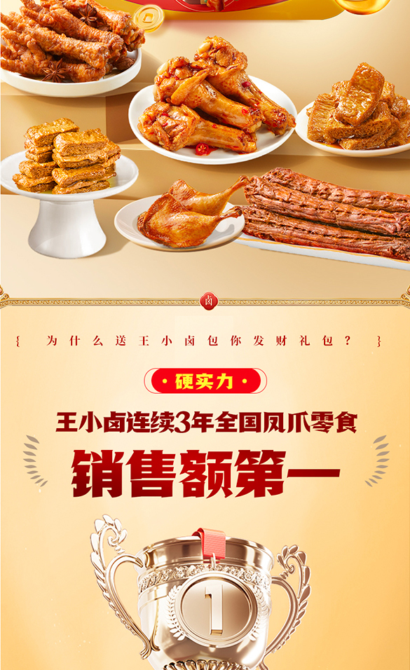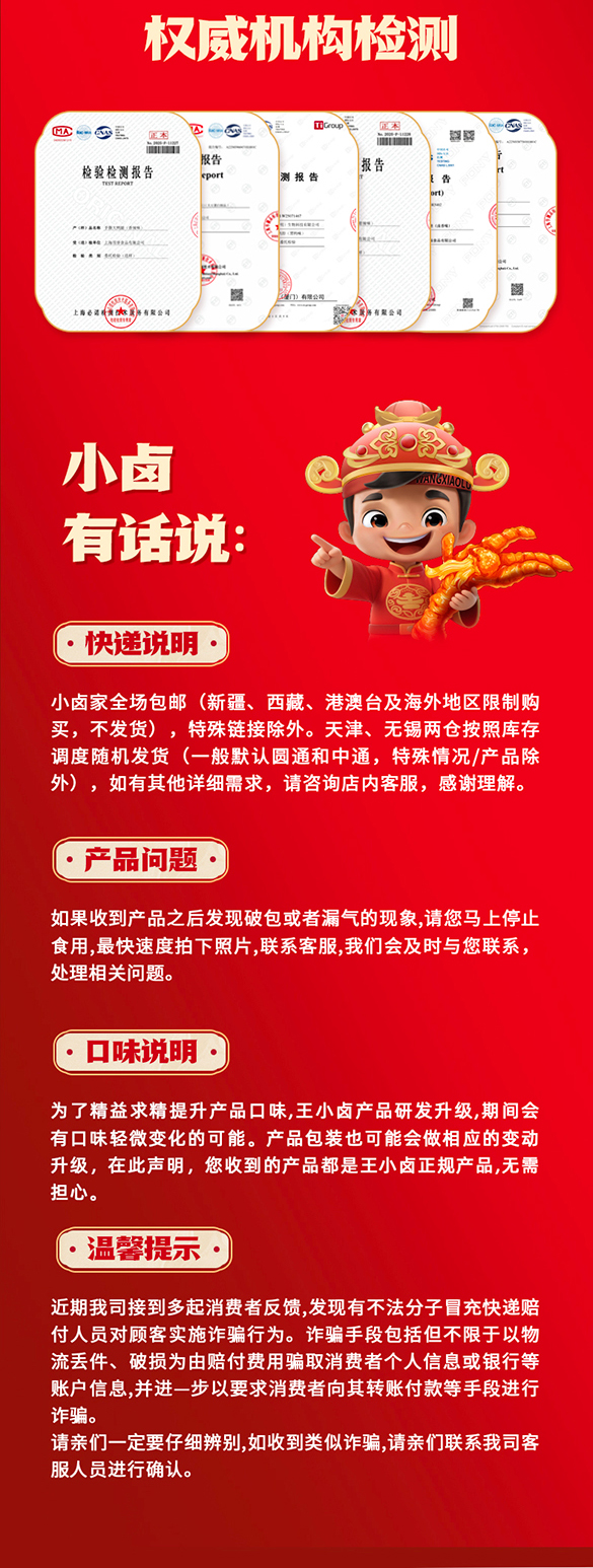 【自营】王小卤虎皮鸡爪卤味零食包你发财礼袋628g
