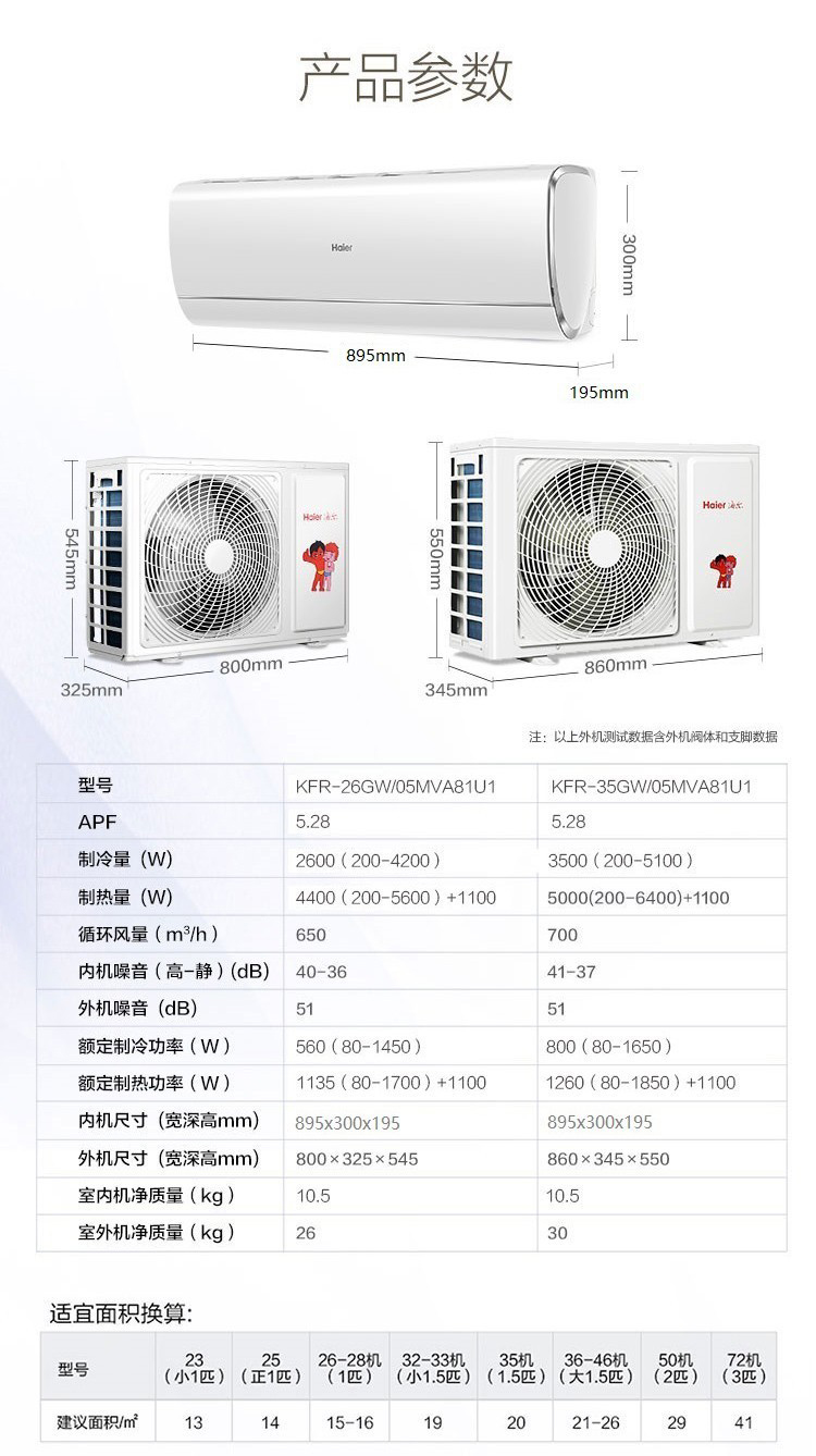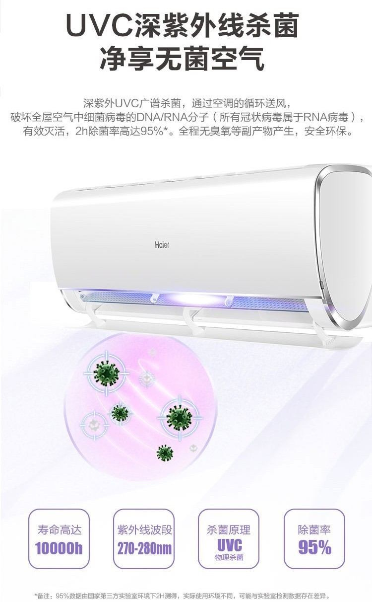 海尔空调挂机新一级变频 1.5匹壁挂式冷暖空调卧室家用 56℃自清洁WIFI紫外线杀菌KFR-35GW/05MVA81U1
