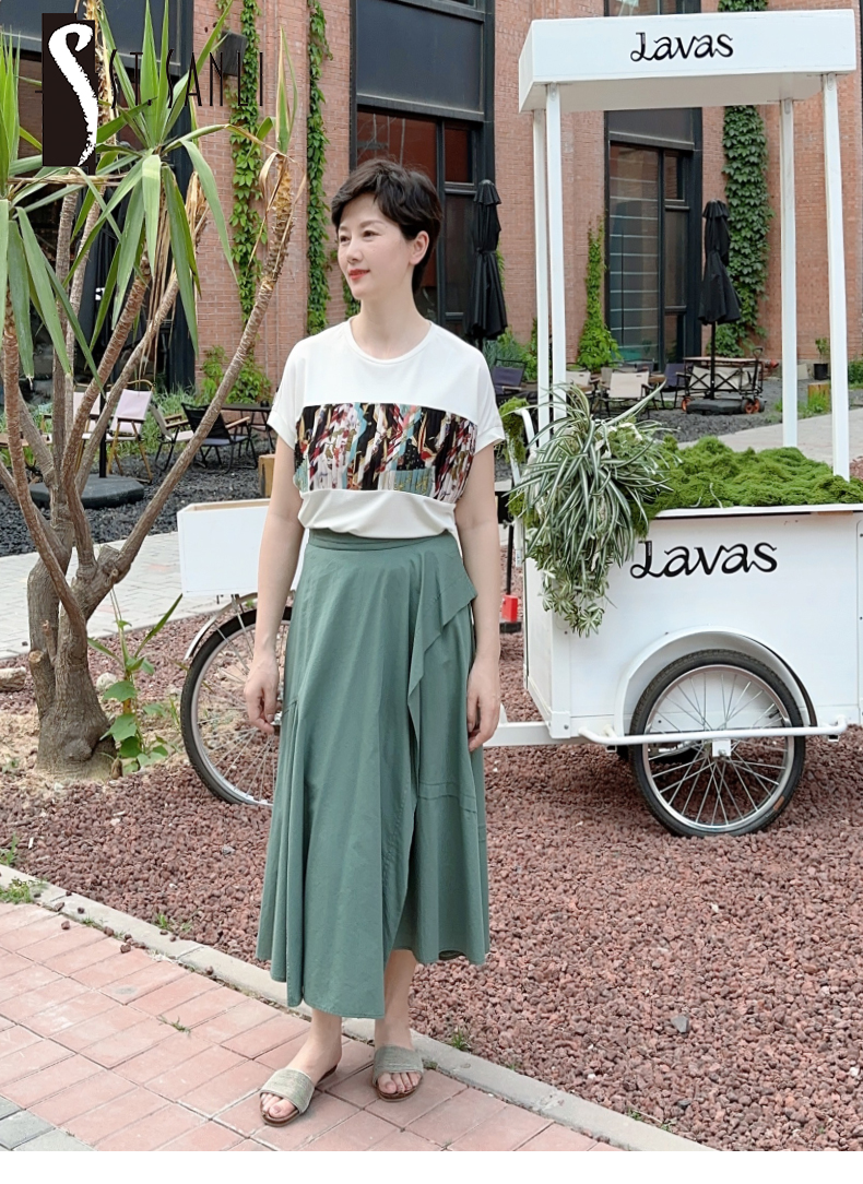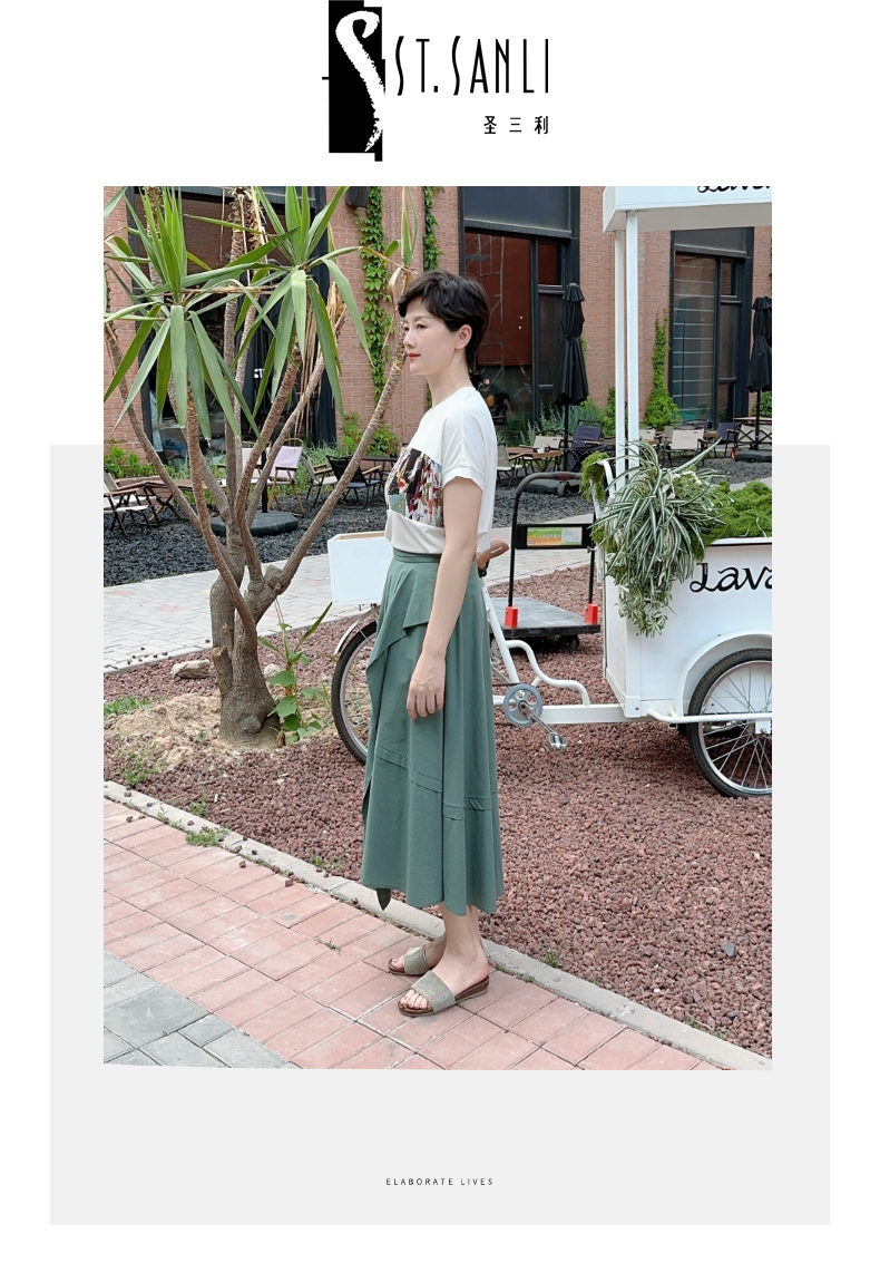 圣三利女装夏季中长款不规则百褶半身裙SL121B05