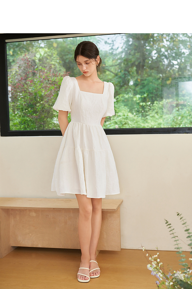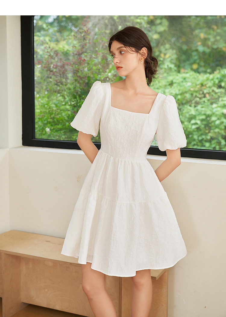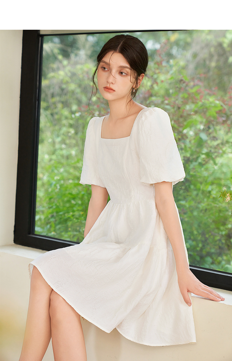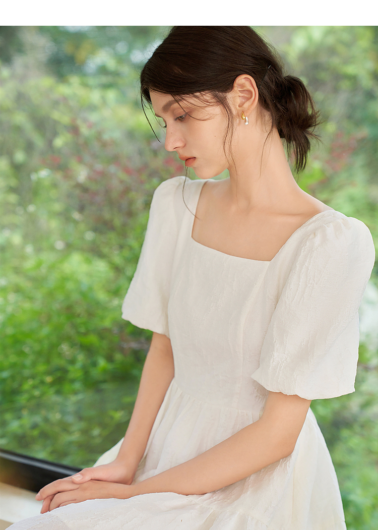 法式浪漫肌理感提花花苞袖连衣裙女夏季甜美白月光公主裙V1541122